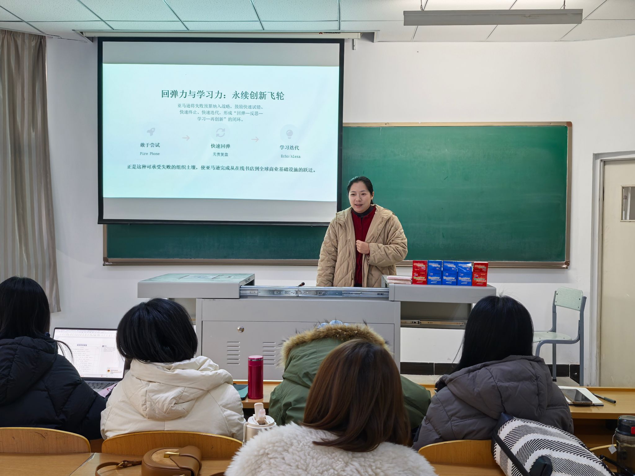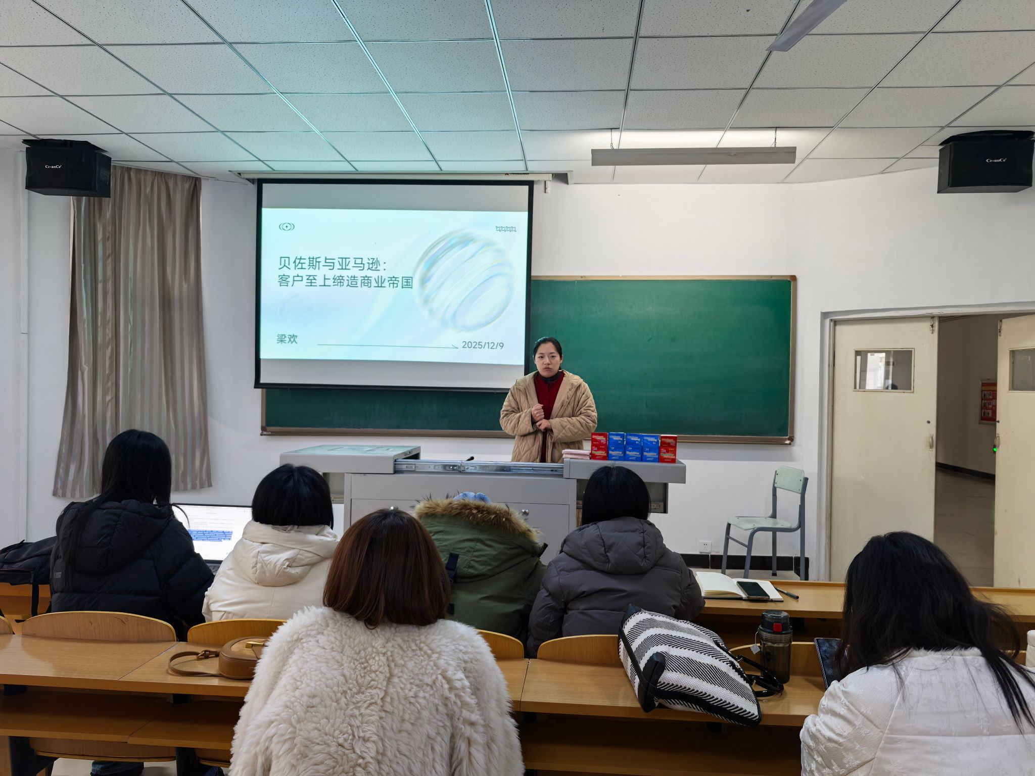 随后,梁欢老师系统分享了《一网打尽:贝佐斯与亚马逊时代》的阅读感悟。她从多个维度,清晰梳理了亚马逊从车库初创到全球商业帝国的发展轨迹,重点拆解了客户至上、长期主义和快速迭代等核心商业逻辑。结合学校信息产业商学院的定位,梁欢老师提出,商务英语教学应借鉴亚马逊的逆向工作法,从学生就业需求与行业发展趋势倒推课程设计,推动英语+信息产业复合人才培养模式落地。她强调,亚马逊始终将客户需求置于首位的理念,与学校以学生发展为中心的价值观高度一致,教师应将学生视为核心客户,让学生既具备扎实的英语语言能力,又掌握前沿的行业专业知识,成为符合市场需求的复合型人才。