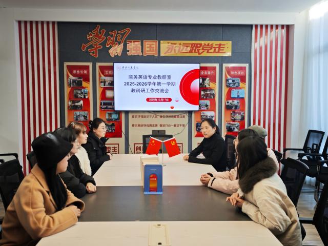 此次交流会的召开,不仅清晰划定了各层级教师发展路径与期末工作重点,更有效激发了教师的教科研热情。参会教师纷纷表示,会议内容务实、指导性强,进一步明晰了工作思路。此次会议为提升教研室教科研水平、夯实教学基础提供了有力支撑,也为推动教师队伍建设、助力学院商务英语专业高质量发展奠定了坚实基础。