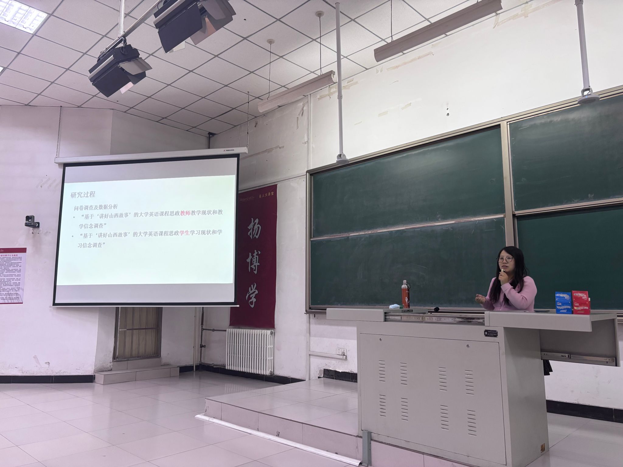12月2日19:00,商务英语学院于博学楼203教室开展了题为《基于“讲好山西故事”的大学英语课堂教学改革》的校级学术讲座,主讲教师为商务英语学院白玲玲老师。讲座围绕大学英语课程思政与地方文化融合的教学路径展开,吸引了学院众多教师参与。