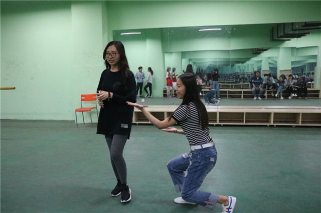 5月8日19:30,外语系于学生活动中心排练厅,为第五届“魅夜乌马河”校园戏剧节准备的舞台剧进行汇报演出,吴鹏飞老师对同学们的表演做细节指导。