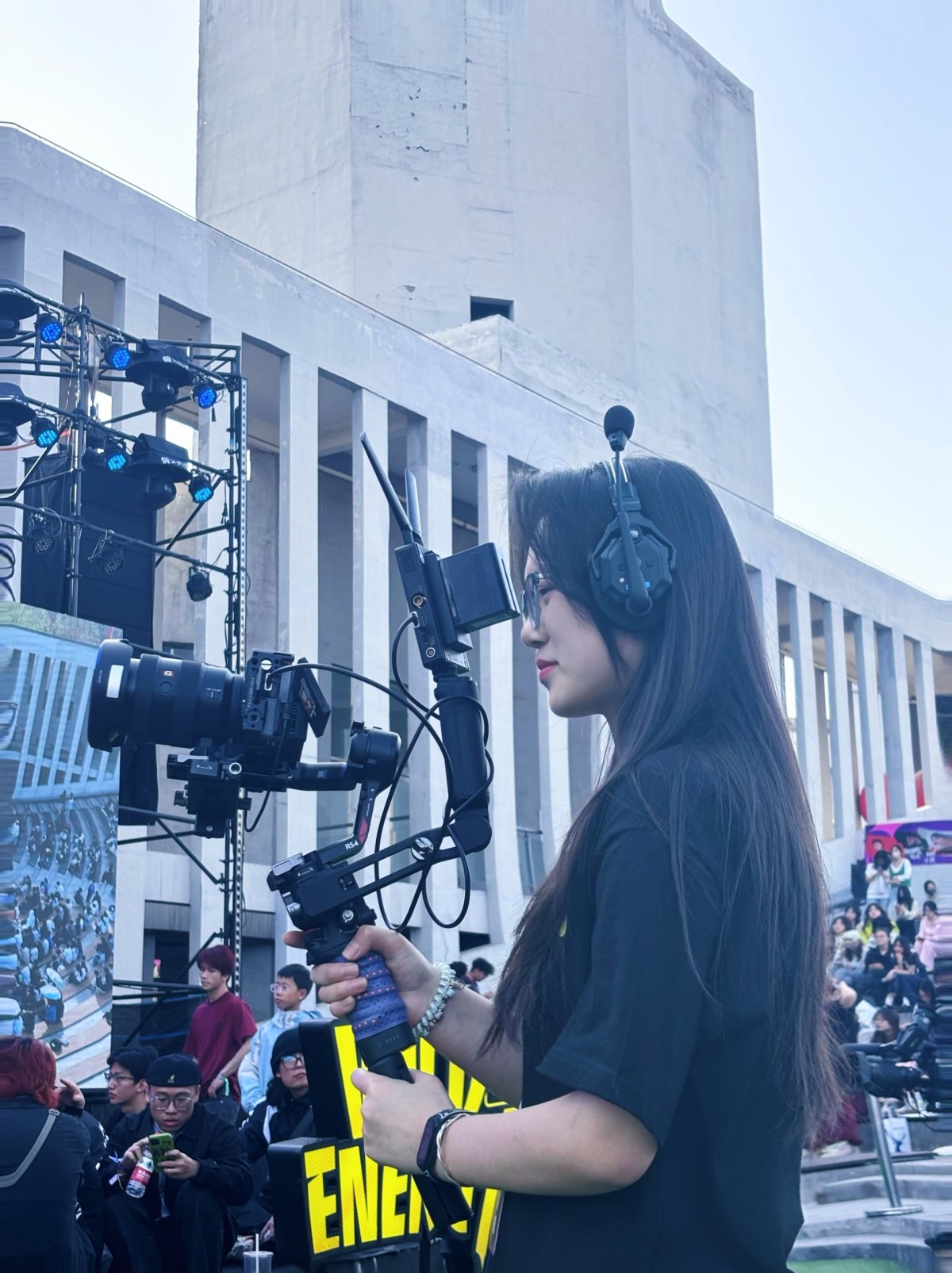 在一次次实践中,我不断打磨技艺,能够从容带领团队奔赴各类活动现场,面对设备故障、光线突变等突发状况也能沉着应对,与团队成员共同创作出一部部精彩的背景视频。在那个没有窗户的办公室,总是不觉得时间飞快,我还记得一天奔波四场活动的疲惫,剪视频熬到凌晨四点的虚脱,临时起意去看日出,那才是“群像”的意义。从初入校园时的懵懂“小白”,成长为能够独当一面、敢于担当的学生干部,这段蜕变之路,满是奋斗的汗水与收获的喜悦。
