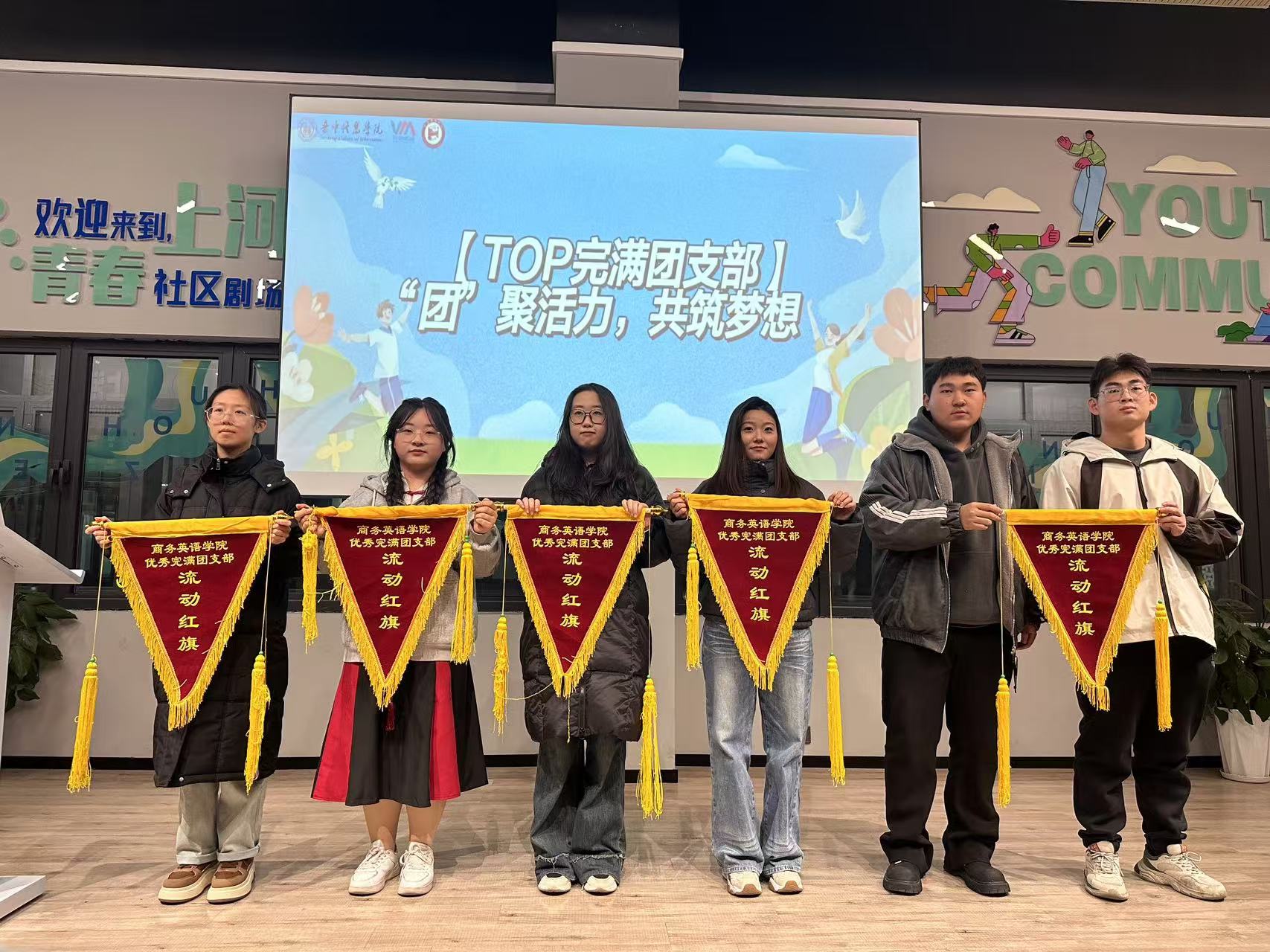 我到现在都清晰地记得我们是倒数第二个讲述,在等待的时候我根本没办法认真听别的班级讲的内容,一直在心里默背稿子,紧张到腿直发抖。功夫不负有心人,终于为班级拿到了那个象征着荣誉的“流动红旗”。后来,我们有机会竞选“top完满团支部”,从早到晚地排练,一遍又一遍地修改稿子,打磨剧本,布置场地,努力把每一处做到完美,每一个同学都加入到其中来,为了共同的目标而奋斗。