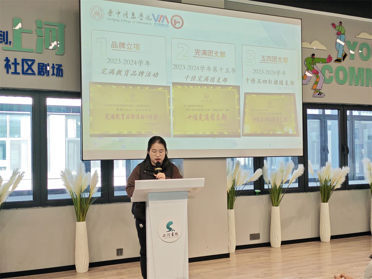 心态的转变对我而言意义非凡。从最初的忐忑不安到如今的游刃有余,我完成了从“局促”到“自信”的华丽转身。这一过程中,我的个人能力显著提高,更带领班级斩获诸多荣誉:2023-2024学年“十佳五四红旗团支部”“十佳完满团支部”称号,以及品牌项目的成功立项并落地实施。这些成绩的背后,是无数次努力与汗水的浇灌,更是团队协作精神的最佳佐证。