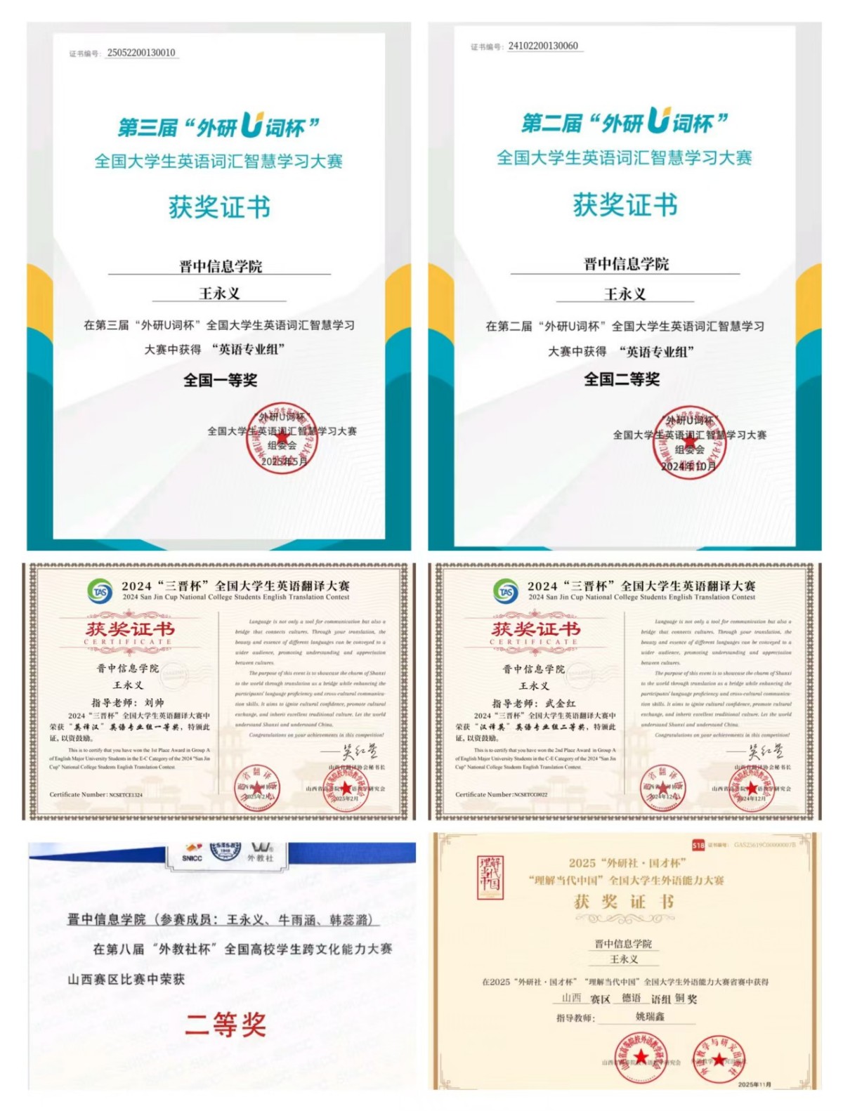 5. 第八届“外教社杯”全国高校学生跨文化能力大赛山西赛区二等奖;