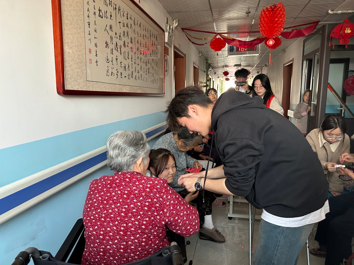在一次次申报与答辩之外,也逐渐意识到,团支书的职责并不止于材料与汇报,更体现在具体而细微的行动中。任职期间,秉持“完满的人”思想,先后两次组织班级同学前往太谷文庙社区养老院和百福疗养院开展志愿服务活动。活动前,需要协调时间、对接场地、动员同学;活动中,也要随时关注成员状态与现场秩序。真正走进养老院,与老人交流、陪伴的过程,让我第一次直观感受到“组织者”与“参与者”身份的差别——不仅要把活动办成,更要让每一位参与其中的同学有所触动、有所收获。