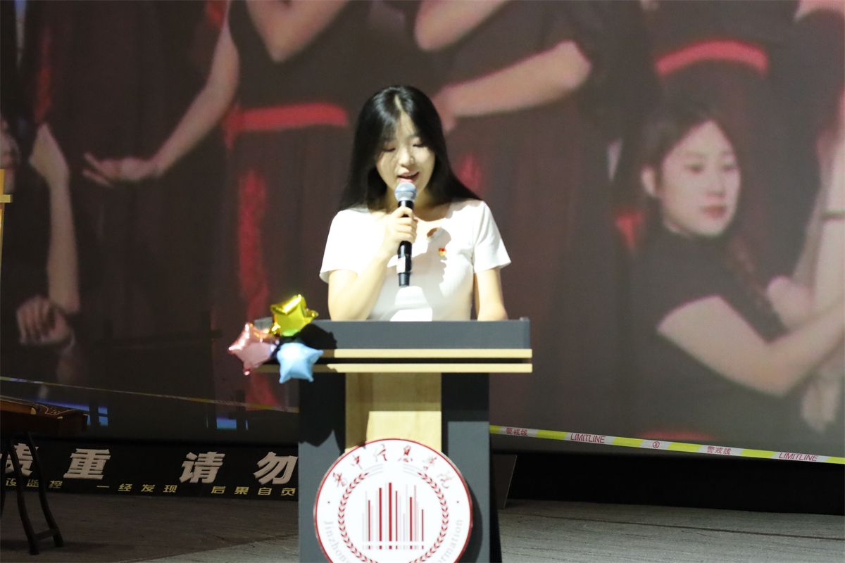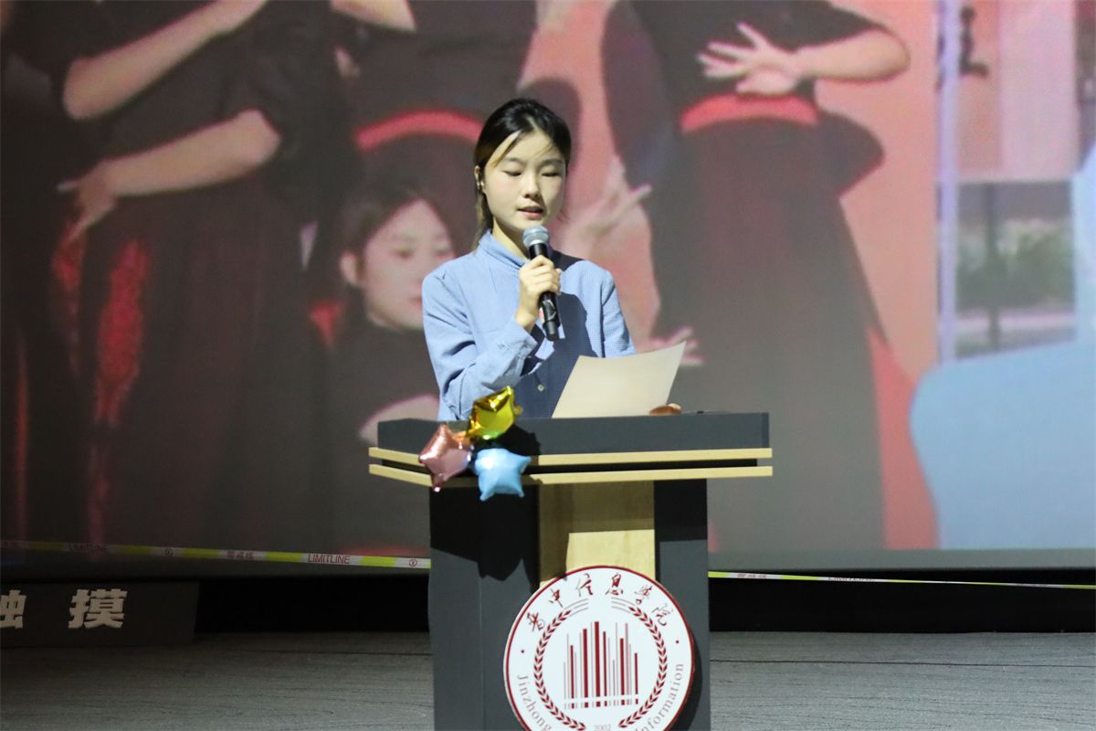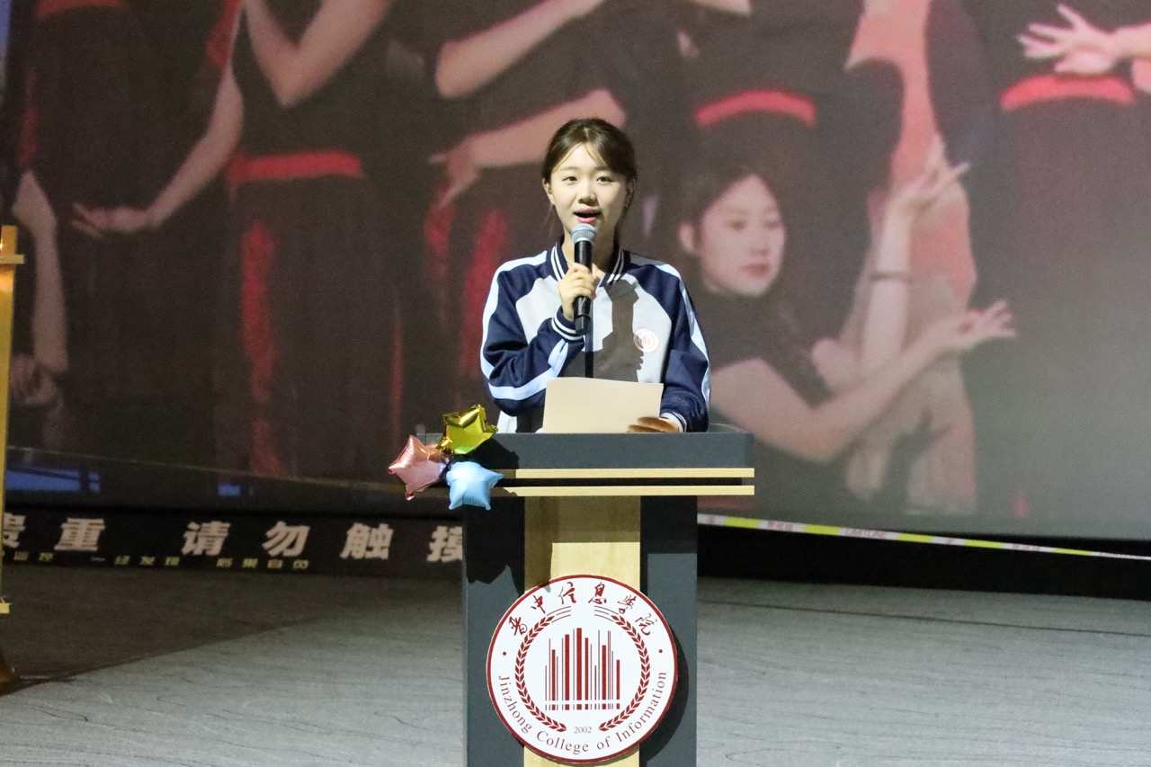英语2204班刘凤荣作为老生代表,以“坐标”为关键词分享成长。从班级团支书到团总支学生副书记,她在班级工作、志愿服务与活动组织中,实现了从“关注自我”到“服务集体”的转变,也领悟到成长坐标的真谛——起点是“眼里有他人”,延伸是“肩上有责任”,价值是“心中有温度”。她寄语新生,成长的坐标就藏在每一次选择里,愿大家以热爱与担当,在大学不断校准方向、实现蜕变。英语2501班范睿钰与英语(专升本)2502班郭坤梅作为新生代表依次登台,言语间满是初入商英大家庭的激动与期待,既表达了对未来专业学习的向往,也传递出积极探索、勇于挑战的决心,真挚的情感引发全场新生的强烈共鸣,彰显出2025级新生的昂扬姿态。