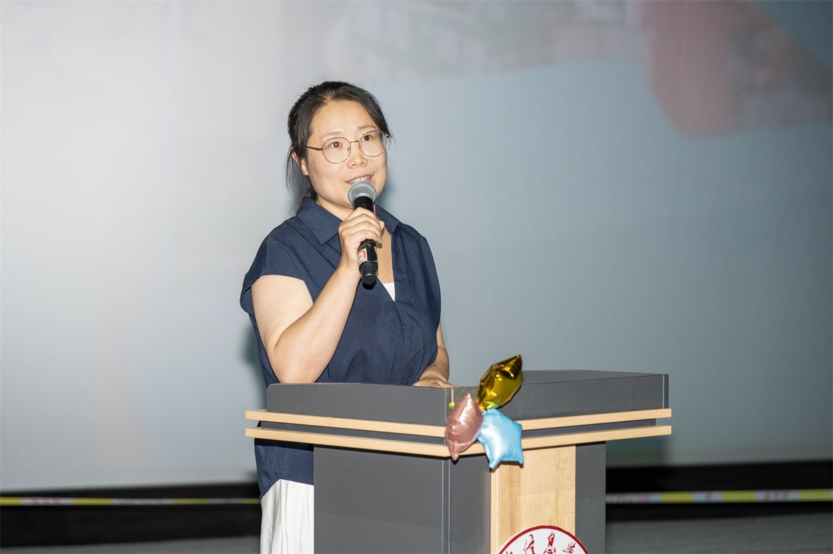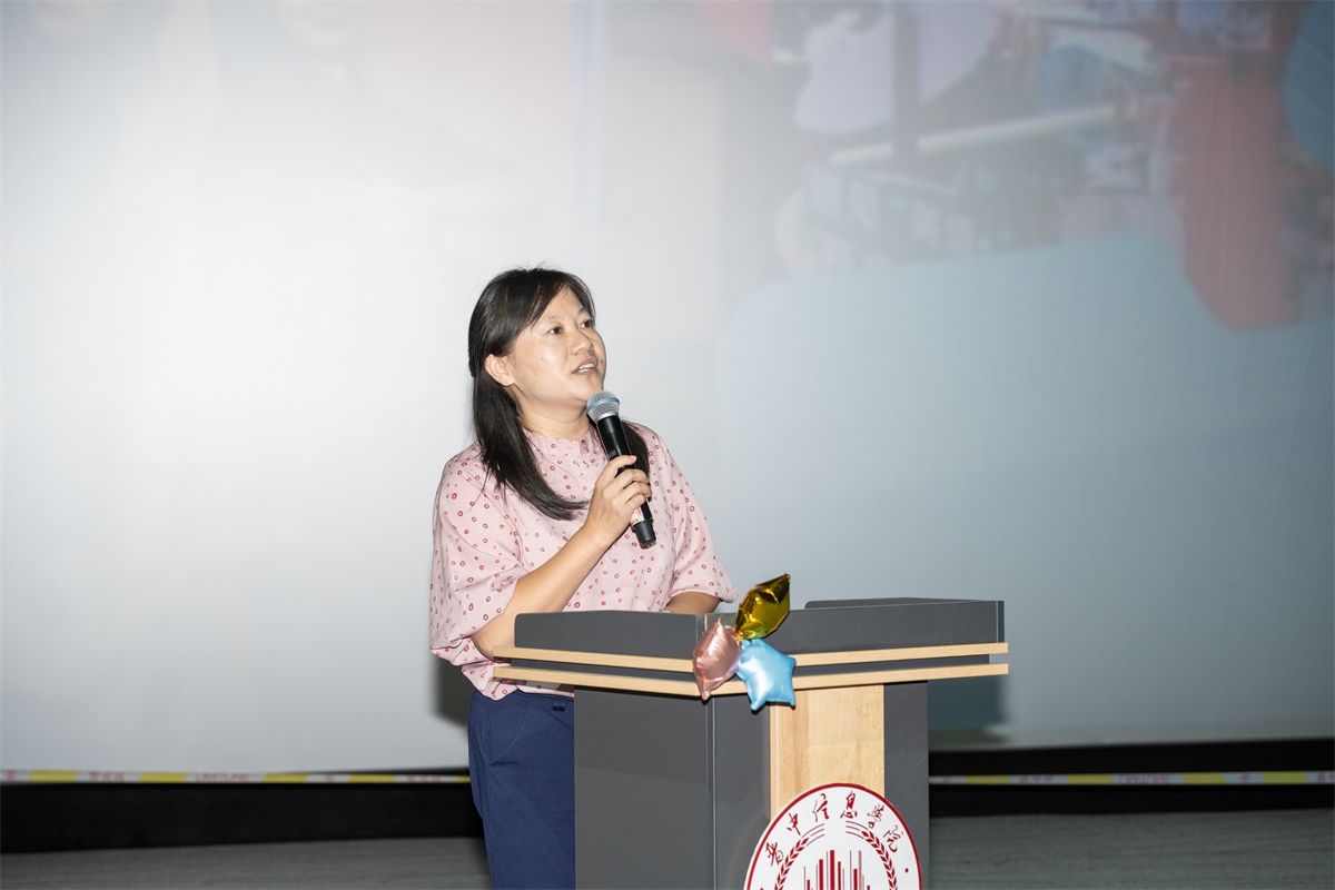 随着新生专属视频集锦的播放、报到时的鲜活花絮、学子对大学的憧憬画面交织,瞬间点燃现场青春氛围。商务英语学院院长葛晓晶,以掷地有声的致辞开启“成长对话”,她将焦点放在语言文化学习上,核心强调“Independent thinking and humanistic spirit”(独立思考与人本精神),提倡各位新生“in-depth learning to temper thinking”(深入学习以锤炼思维),指“Language learning aims to understand culture and build connections”(语言学习旨在理解文化、建立连接),需坚守人性优势、掌握核心内容,同时鼓励学生“explore interests bravely”(勇敢探索兴趣),期待见证每一位新生的成长。