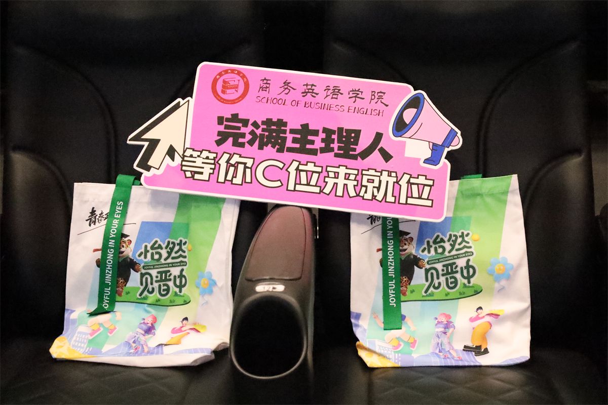 巨幕影厅内早已被满含期待的心意填满,只待开启一场青春盛宴。影厅内,为每位新生精心准备的新生大礼包里面装着承载地域特色的太谷饼、平遥牛肉,还有标注着周边游玩路线的地图与学院宣传册。影厅外,互动专区里定制的手掌纸,静静等候新生留下专属印记,每一样物品都藏着对新生的欢迎与期许,商英大家庭已准备就绪,盼你开启精彩大学篇章。