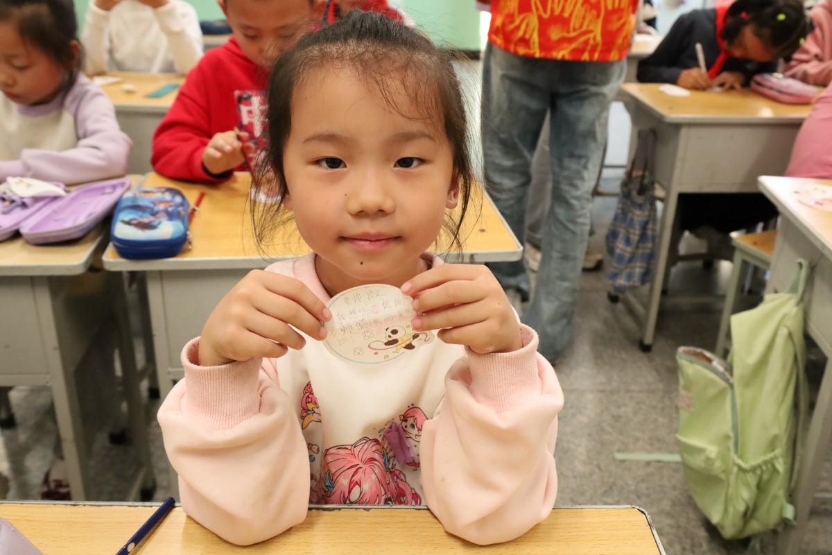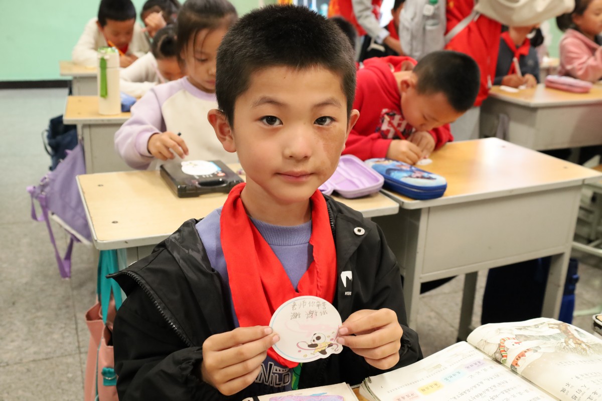 最后递上彩色便签,孩子们一笔一画写下对老师的心意,有的画上小爱心,有的用刚学会的英文单词点缀,童真话语里满是对老师的敬意,让学习成果与感恩之心同步落地。