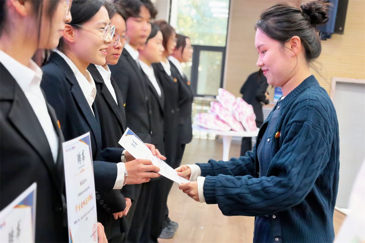 学工副院长梁瑶福、裴晓雅老师为第十二届学生组织成员代表颁发证书及纪念品,既是对过往奉献的认可,也是青春岁月中珍贵的纪念。