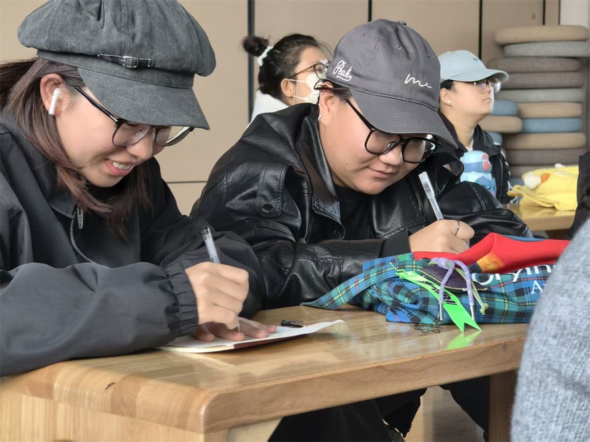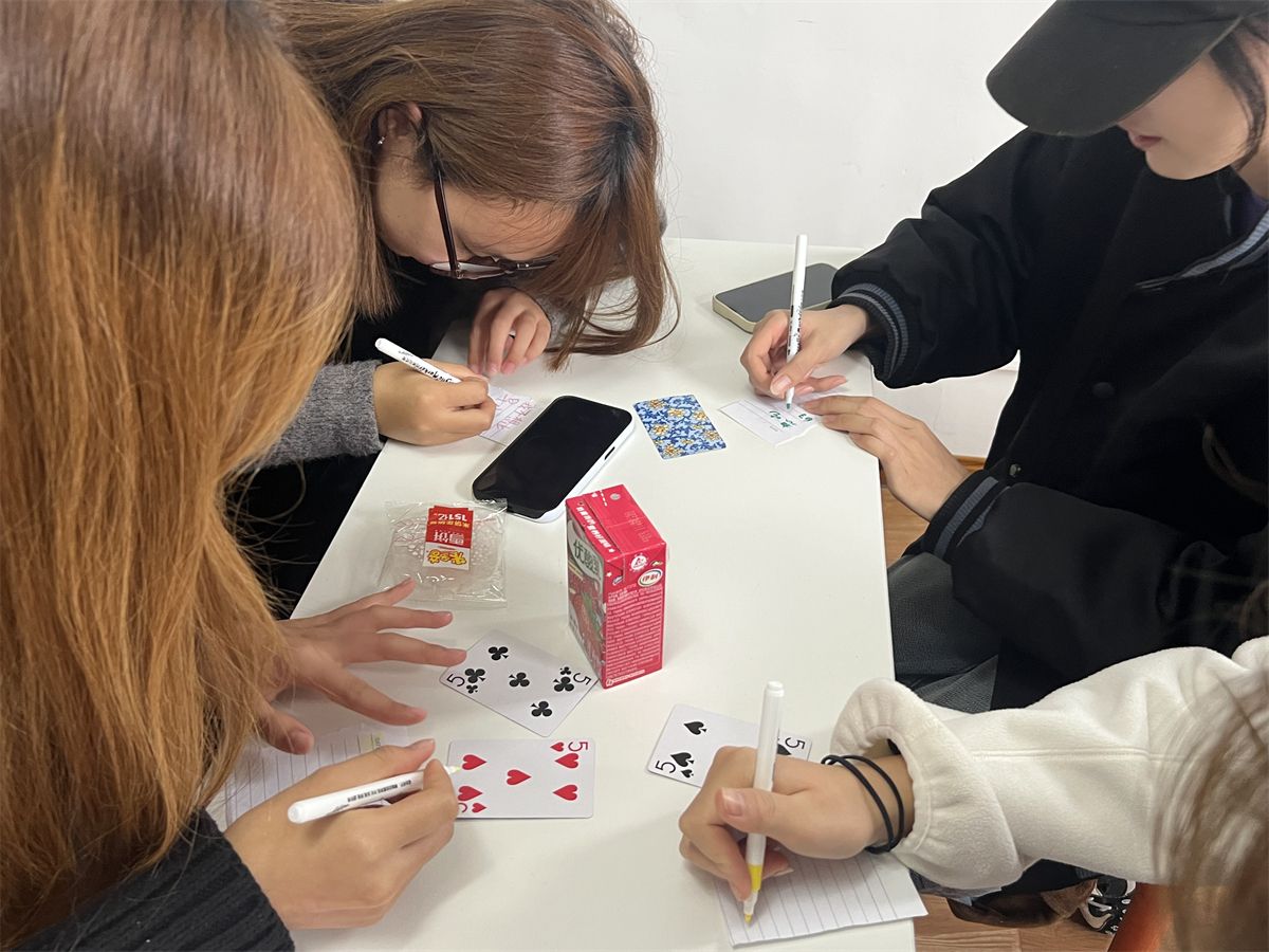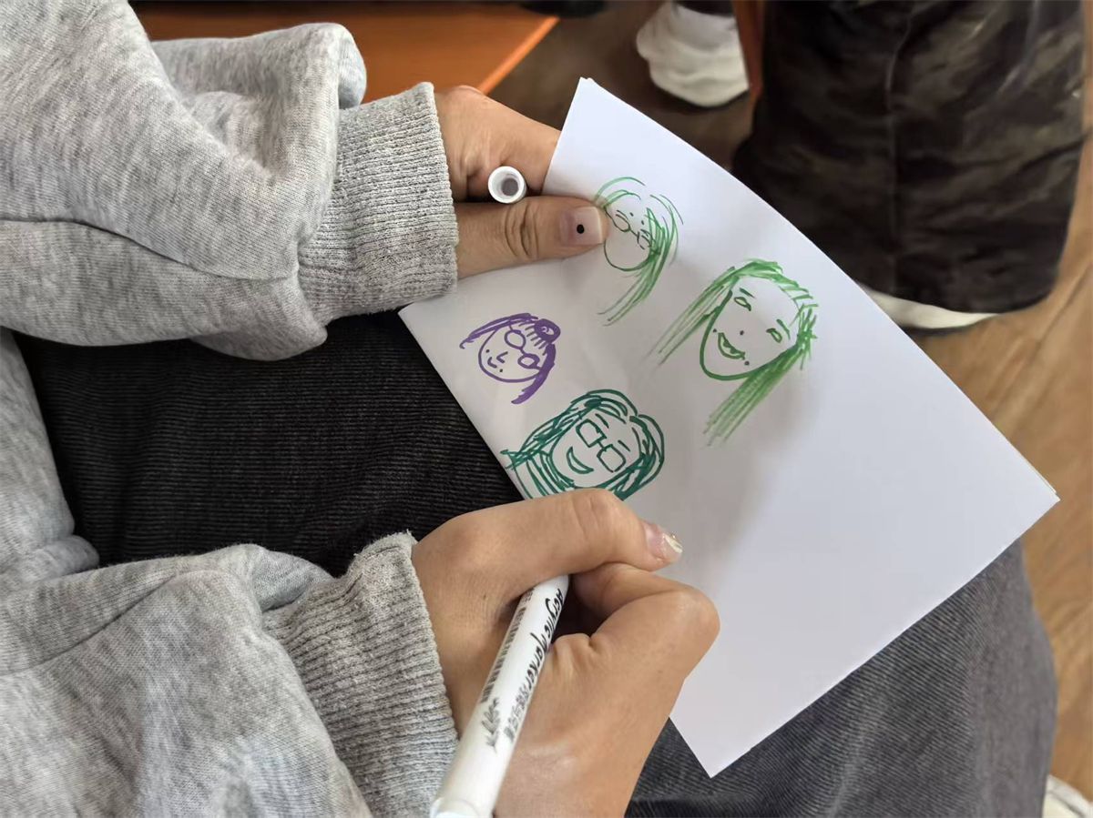 商务英语2402班与英语2401班的“遇见彼此·愈见自己”活动,在无边书院的“蒲公英·会议室”里满是温暖:“扑克觅友”让抽中同数卡牌的同学结对,陌生感在抽卡瞬间消散;“十分钟真心话”里,从“最喜欢的校园角落”到“未来小目标”,真诚问答让默契悄然生长;后续“心声树洞”前,有人匿名写下烦恼,有人驻足留言安慰;“烦恼手札”里,杂乱心绪被梳理成文字;“画中知己”环节,结对伙伴用画笔勾勒彼此,笔触间满是理解与认可,双班联动让“遇见”成为“愈见自我”的起点。