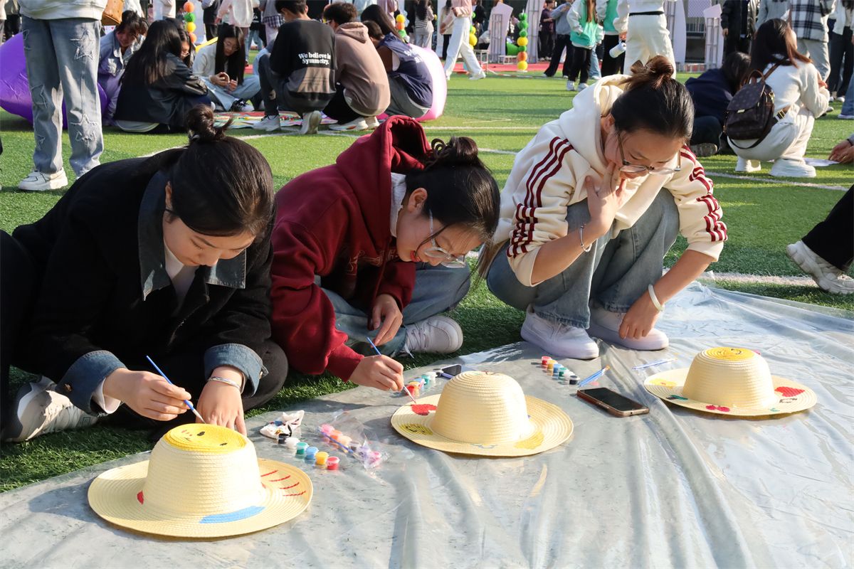 互动游戏环节更将心理关怀融入趣味体验:“赶鸡入笼”中,众人持扇协作,把充气小球稳稳赶入障碍笼子,节奏调整间化解压力,让“同伴支持”的力量在欢笑中传递;“帽子游戏”以心理知识问答为起点,答对者领取空白帽子,在塑料膜上用颜料创作——有人绘笑脸驱散焦虑,有人写短句鼓励自己,让每顶帽子都成为独一无二的“情绪载体”。