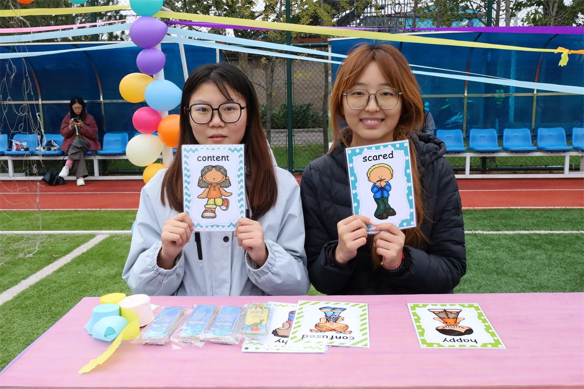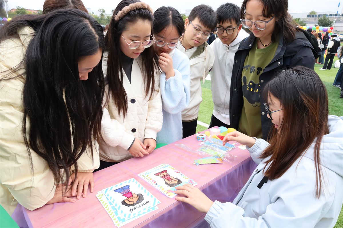 后续五大英语互动关卡更让体验感拉满:“英语单词接龙”围绕“joy”“courage”等情绪词接力,超过5个就解锁多巴胺贴纸;“心理英语拼图”中,成员合力拼成“Every smile is a gift to yourself”等温暖短句,朗读时字句化作治愈力量;“心理英语配对”让参与者为“开心聚会”“悲伤告别”等图片匹配英文描述,加深对情绪的认知;“情绪展现”环节,随音乐切换用“excited”“calm”等单词搭配夸张动作,笑声中释放压力;“多巴胺情绪拼图”则把场地变成探索乐园,小组合作寻找带英语单词的碎片,完成后用英语描述画面情绪,让语言学习与心理成长同频共振。通过这类特色设计,让心理活动既保留“英语”优势,又深化“疗愈”内核,帮助学子在语言实践中认知情绪、在故事分享中收获共鸣。