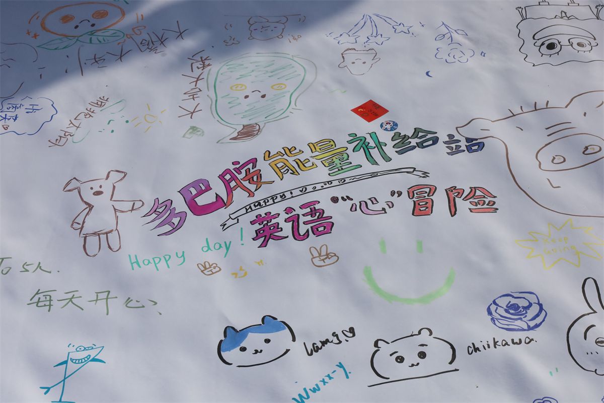 以“用英语疗愈情绪,借多巴胺唤醒活力”为核心,首站“多巴胺色彩·情绪涂鸦”参与者用明黄线条勾勒喜悦、粉紫色块描摹平静,将无形情绪化作具象图案,按下快门即是与自我的温柔对话。英语演讲围绕“多巴胺与青春情绪”展开,从“新入学的心绪起伏”等共鸣话题切入,用英语解析多巴胺对焦虑、愉悦等情绪的影响,分享科学调节方法,实现“心理疗愈+语言学习”的双重收获。