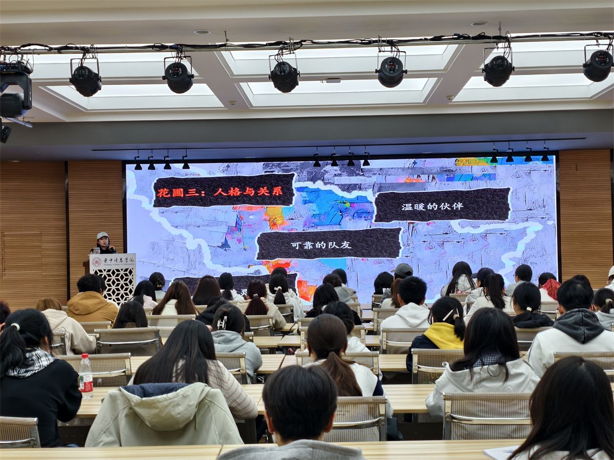 姚雅璇老师以“每个人的成长都像一棵树”为核心喻体,开宗明义解读大学成长逻辑。她将新生常见的孤独迷茫、挫折落选、浮躁诱惑比作成长路上的“三场风雨”,引导学生在完满教育的沃土中,主动扎下“独立之根”以应对迷茫、“抗挫之根”以直面否定、“沉淀之根”以抵御诱惑,让抽象的成长路径变得具体可感。