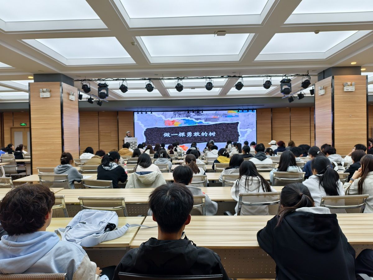 当大学新生站在成长的新起点,如何理解“完满”的深意、锚定前行的方向?商务英语学院2025级辅导员姚雅璇老师,以一场主题为“做勇敢的树,开理想的花”的说完满活动,用生动的隐喻、清晰的指引与温暖的互动,为新生们搭建起从“认知”到“行动”的桥梁,让成长的逻辑具象化,让理想的种子在完满教育的沃土中悄然扎根。