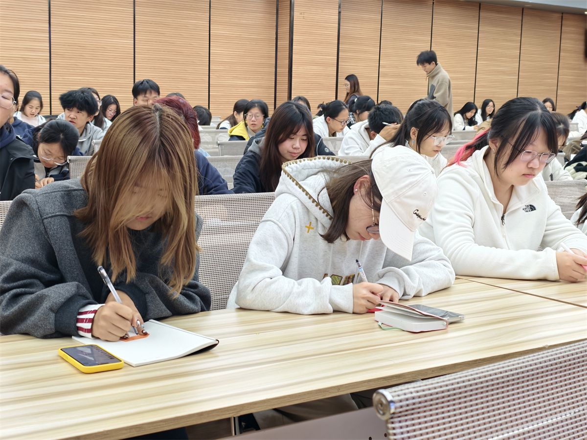 在“写给大四的自己”环节,温馨的音乐成为同学们情感与理想的交汇点。他们将对未来的期许落笔成信,郑重投入时光胶囊。姚雅璇老师将这一行为定义为“成长起点的承诺、理想绽放的誓言”,不仅让现场氛围升温,更让学生以书面形式锚定目标,为四年大学成长注入初始动力。