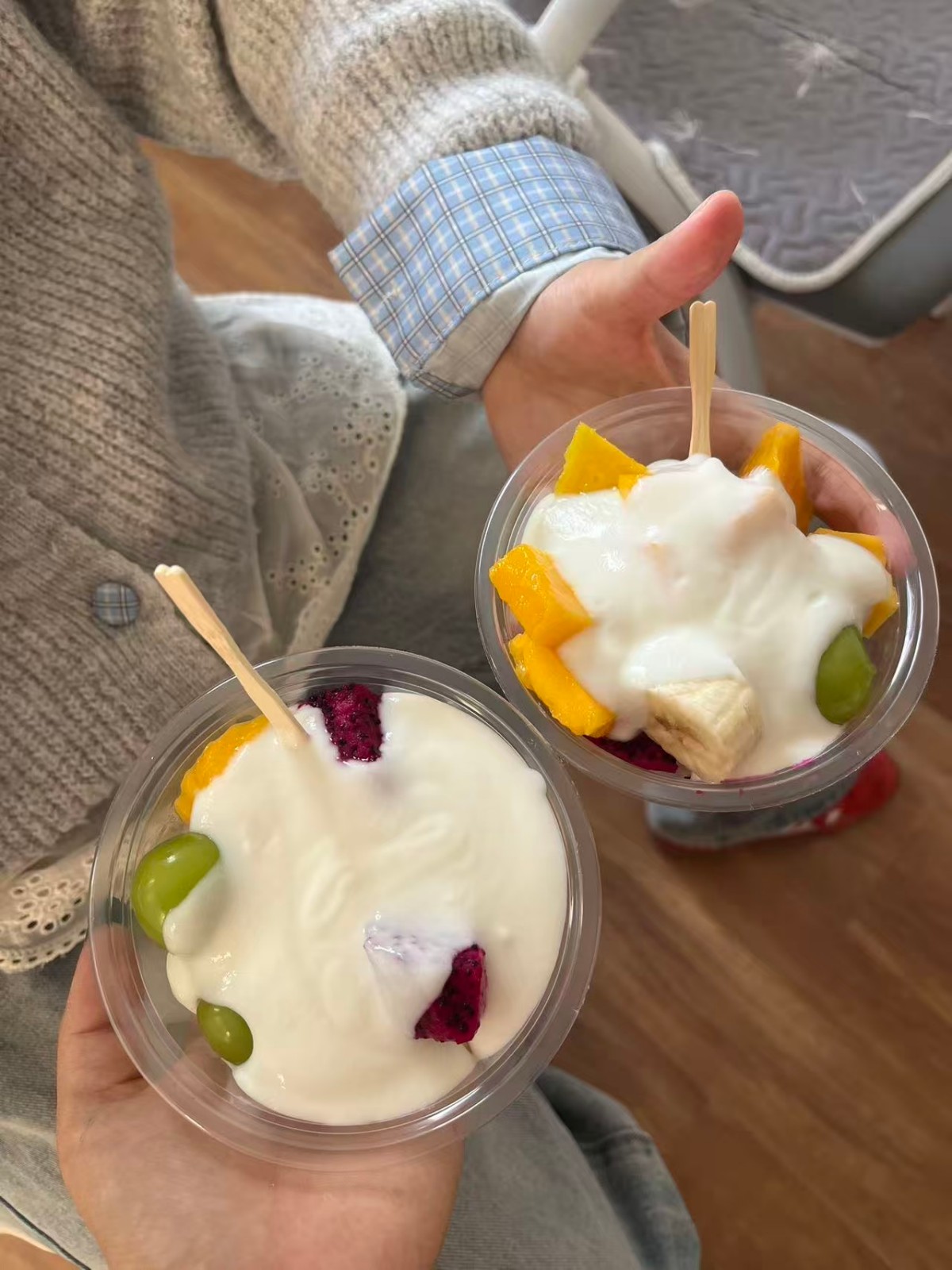 10月15日,英语2405班于无边书院“职”说空间启幕“‘果’然遇见,‘捞’获成长”水果捞完满活动,以秋日治愈为核,让成长与陪伴在甜蜜中蔓延。 前期备妥芒果、苹果等鲜果与酸奶,活动中同学们分工默契:清洗组细致冲净食材,分食区巧思叠放水果与酸奶,拼出“秋日限定”的精致。制作时,分享学业趣事、化解陌生隔阂;完成后围坐交换,清甜果香混着酸奶醇厚,笑声里陌生感尽散。