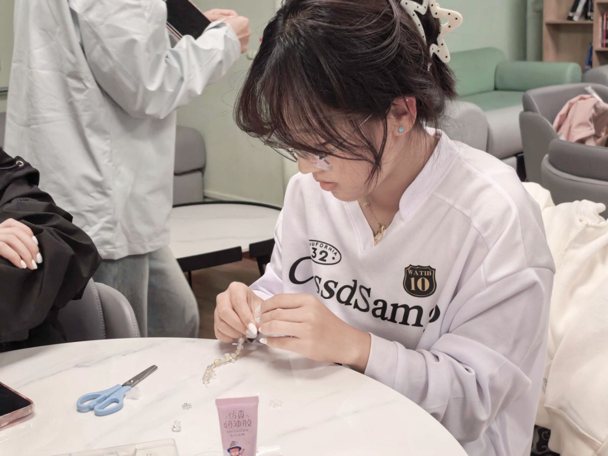 10月16日,英语2501班在青藤·共享大厅举办“同心结艺,编织我们的时光”手链制作活动,珠子串联象征精神与情感的传承。现场,同学们串珠时每颗都凝聚心意,手链如纽带联结彼此,尽显“情同手足”的亲密。大家互帮互助,似“珠联璧合”般默契协作。亲手制作的手链不再是普通商品,而是承载祝福、友谊的信物,让文化传承更有温度。这枚小手链,缠绕着共同的祝福与期盼,也让大家带着温暖记忆,满怀憧憬奔赴未来。