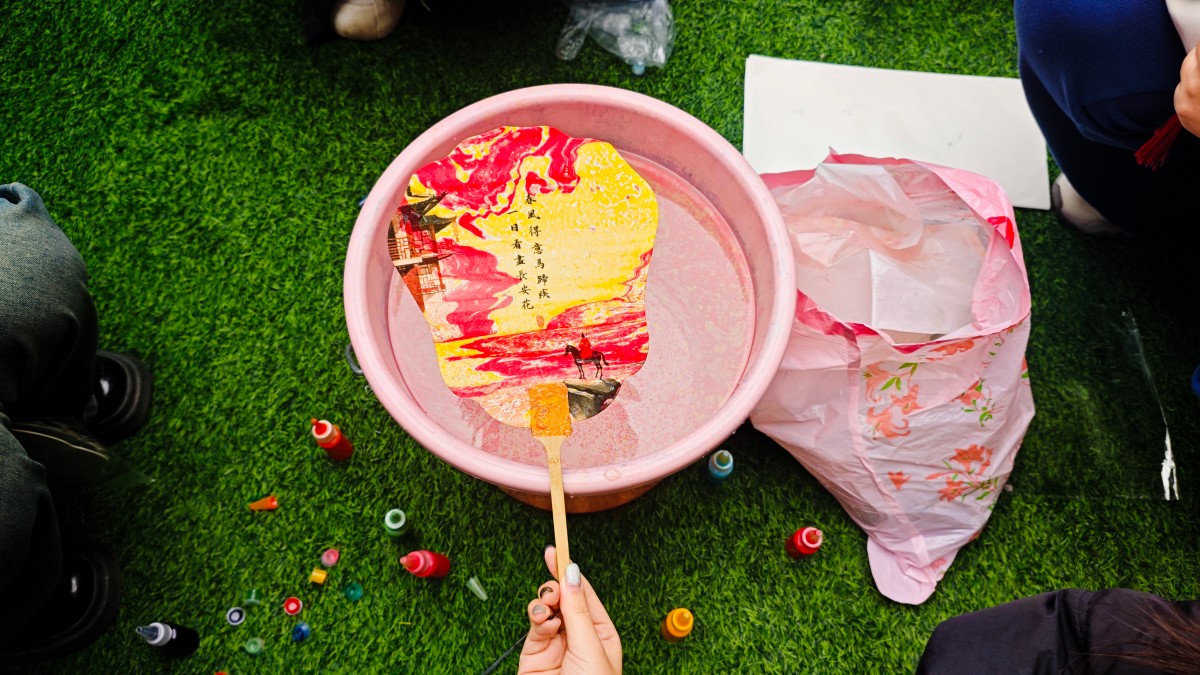 10月21日,英语2402班于上河书院南庭院玉兰庭,举办“染遇知己,扇启新程”完满团支部活动。活动中,同学们用染料为素白扇面染色,或晕染清雅色调,或打造渐变纹路,让原本朴素的木扇焕发生机;扎染环节,大家折叠捆扎素白囊布,浸入靛蓝染料,解结后蓝白纹路如云雾、似波纹,满含传统韵味。最后,众人持自制漆扇合影,或展扇露纹、或倚扇于肩,快门定格相聚时光,留存手作的专注与温馨,以传统手作传递情谊,开启诗意新程。