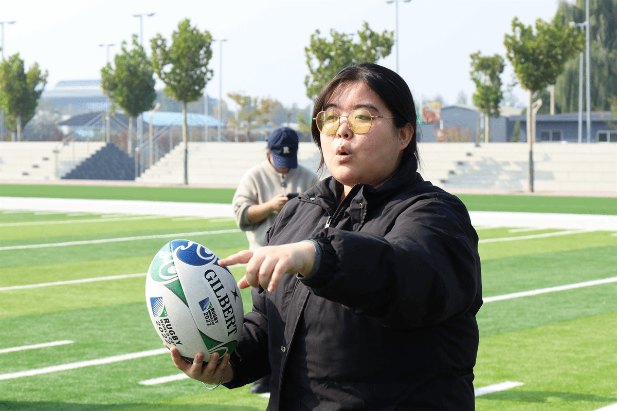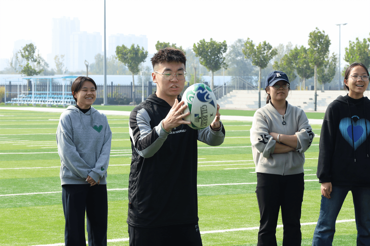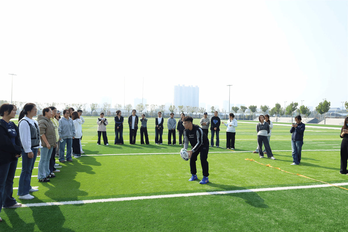 通过跳出“观赛者”的视角,没有高强度竞技的压力,只有上手尝试的好奇,在一次次传接球、配合跑位中,让每一位同学都成为运动的主角,在亲身参与中解锁橄榄球的独特魅力,让青春在绿茵场上与热爱撞个满怀。