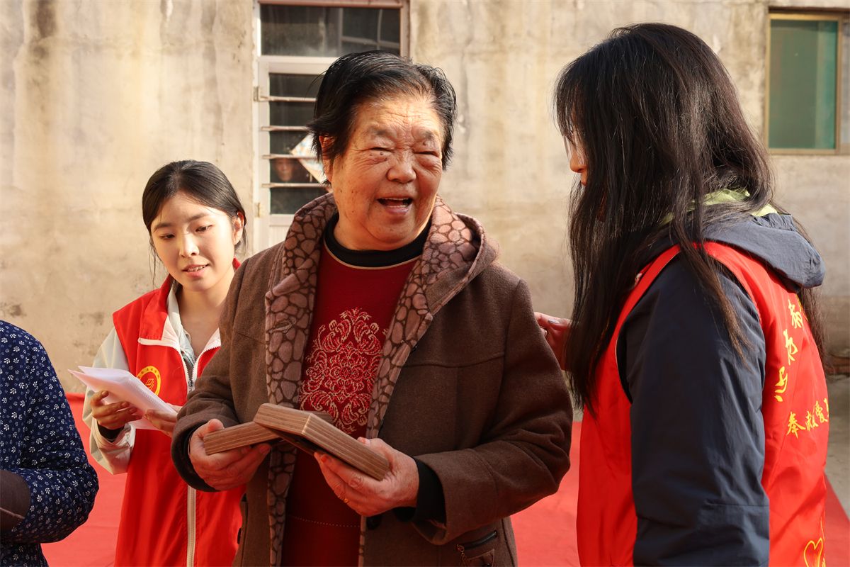 演出尾声,寒意渐涨,却挡不住心底的温暖。青年志愿者们拿出准备好的保暖手套,挨个送到老人手中:“奶奶,这手套很软,您试试合不合适。”一位爷爷双手相握感受着暖意,笑着说:“手套暖手,你们的心意更暖心!”