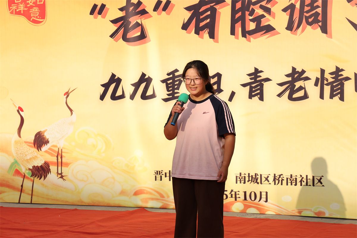 10月29日,由晋中信息学院商务英语学院联合晋中市太谷区南城区桥南社区共同举办的“‘老’有腔调了——九九重阳,青老情暖”,搭建起青老交流的暖心桥梁。
