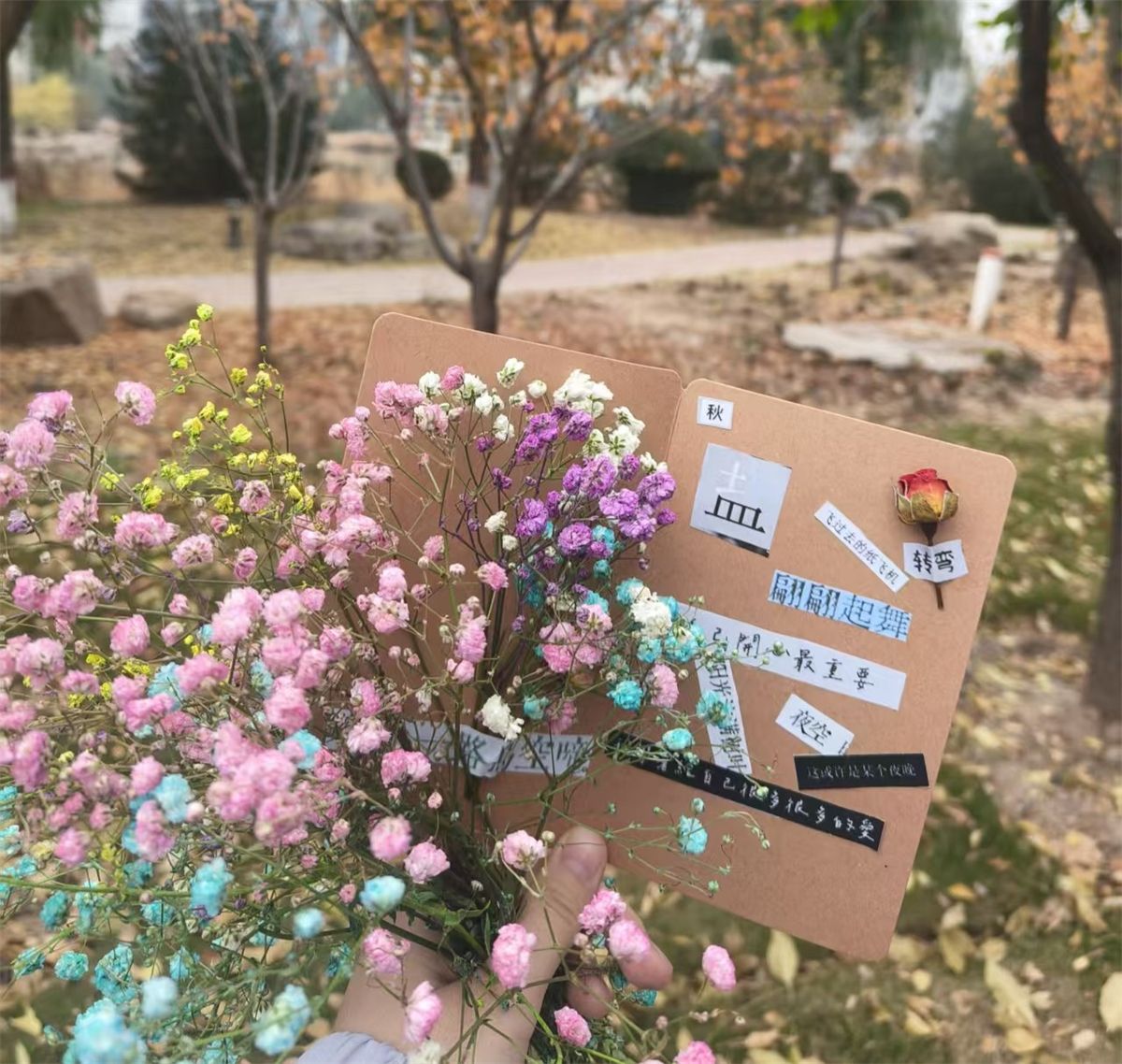 随后,她条理清晰地拆解三大核心环节——“温情盲盒”创意拼贴诗创作、沉浸式小组协作手工、“暖心送达”校园最美工作者慰问,不仅让在场同学对活动流程与深层意义了然于心,更将大家的参与热情瞬间点燃。