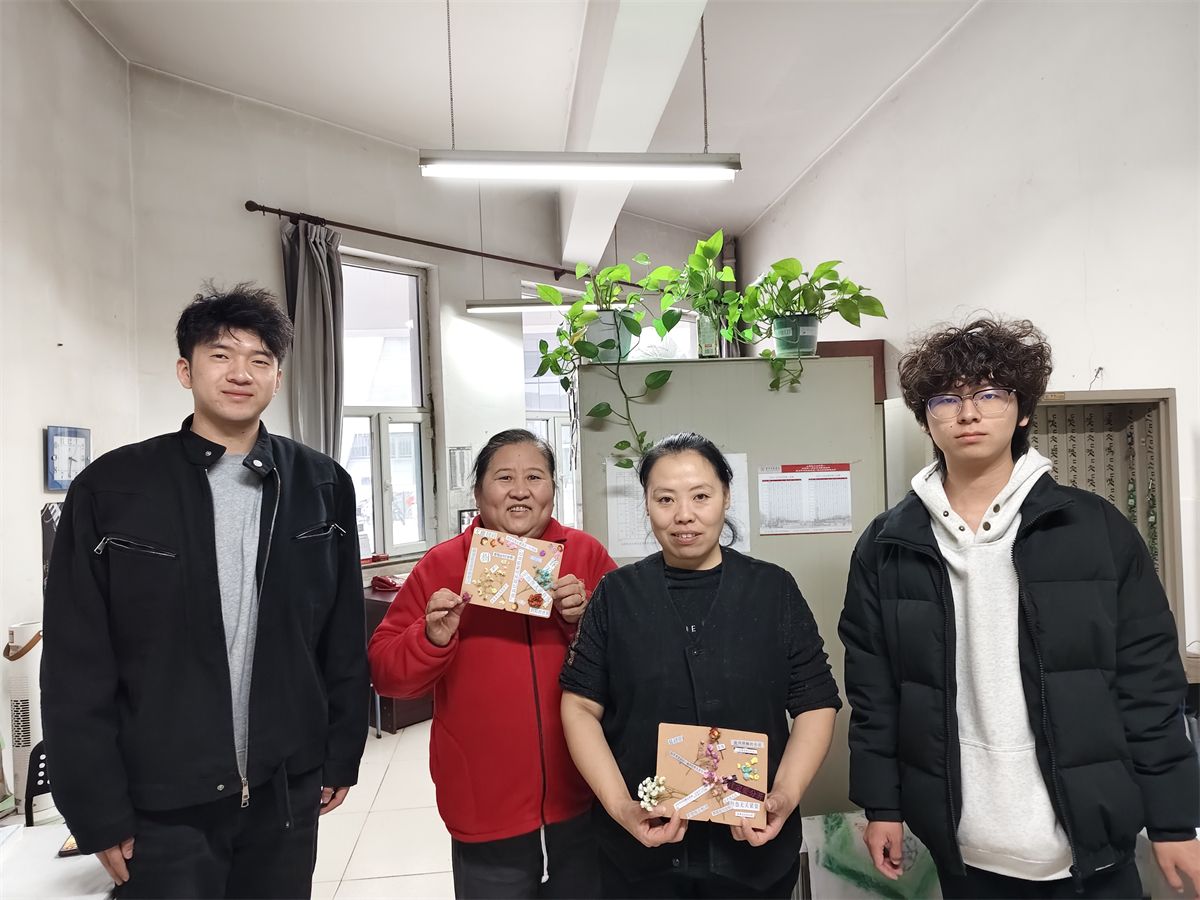 活动步入尾声,班级同学手捧亲手制作的“暖冬小礼物”,穿梭在校园的各个角落。宿管站的暖光下,他们轻敲值班室的门;校门口的岗亭旁,他们驻足在寒风里——每遇见一位坚守岗位的职工,便双手递上卡册,将拼贴诗里的心意化作轻声诉说的感谢。