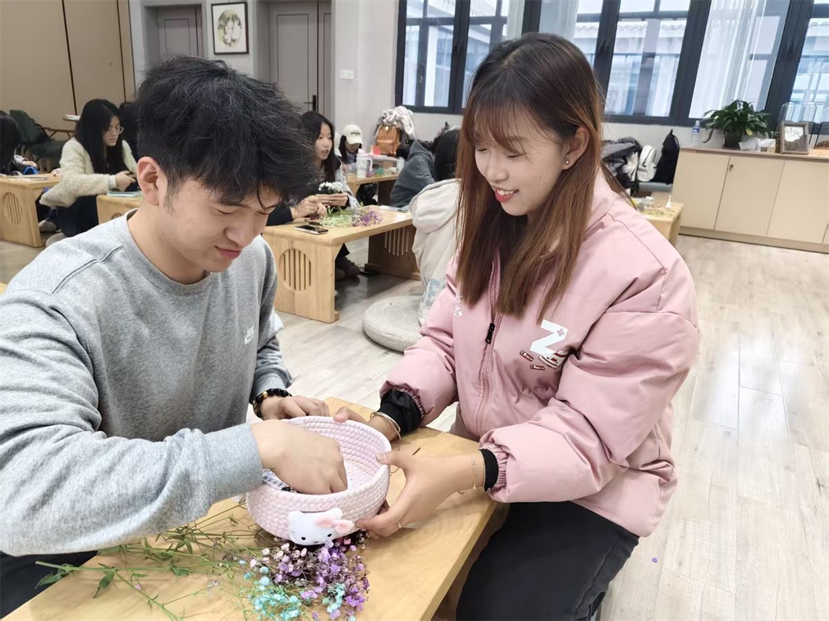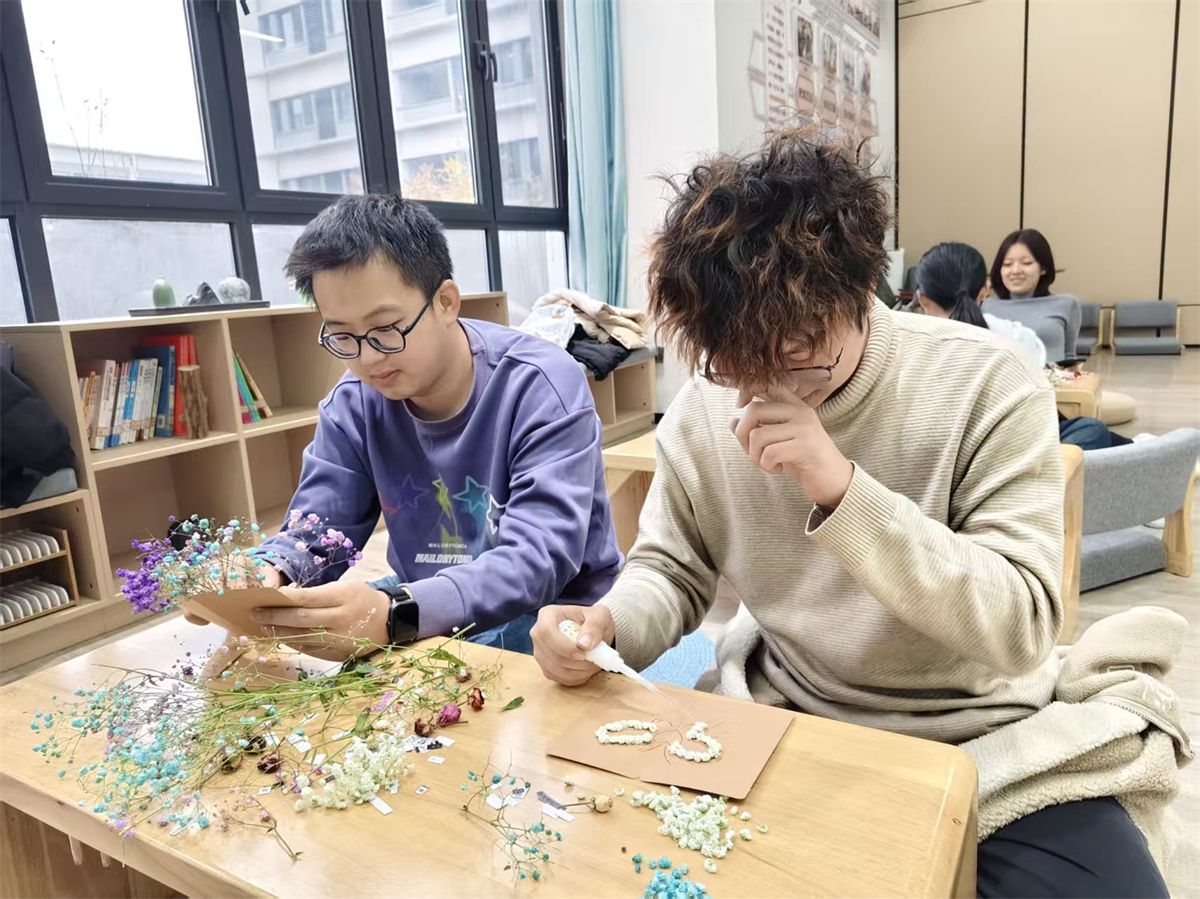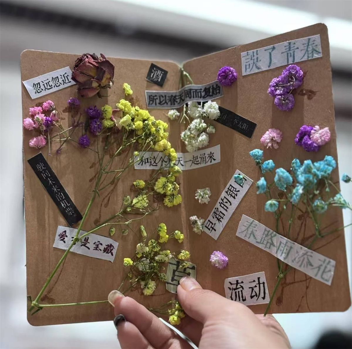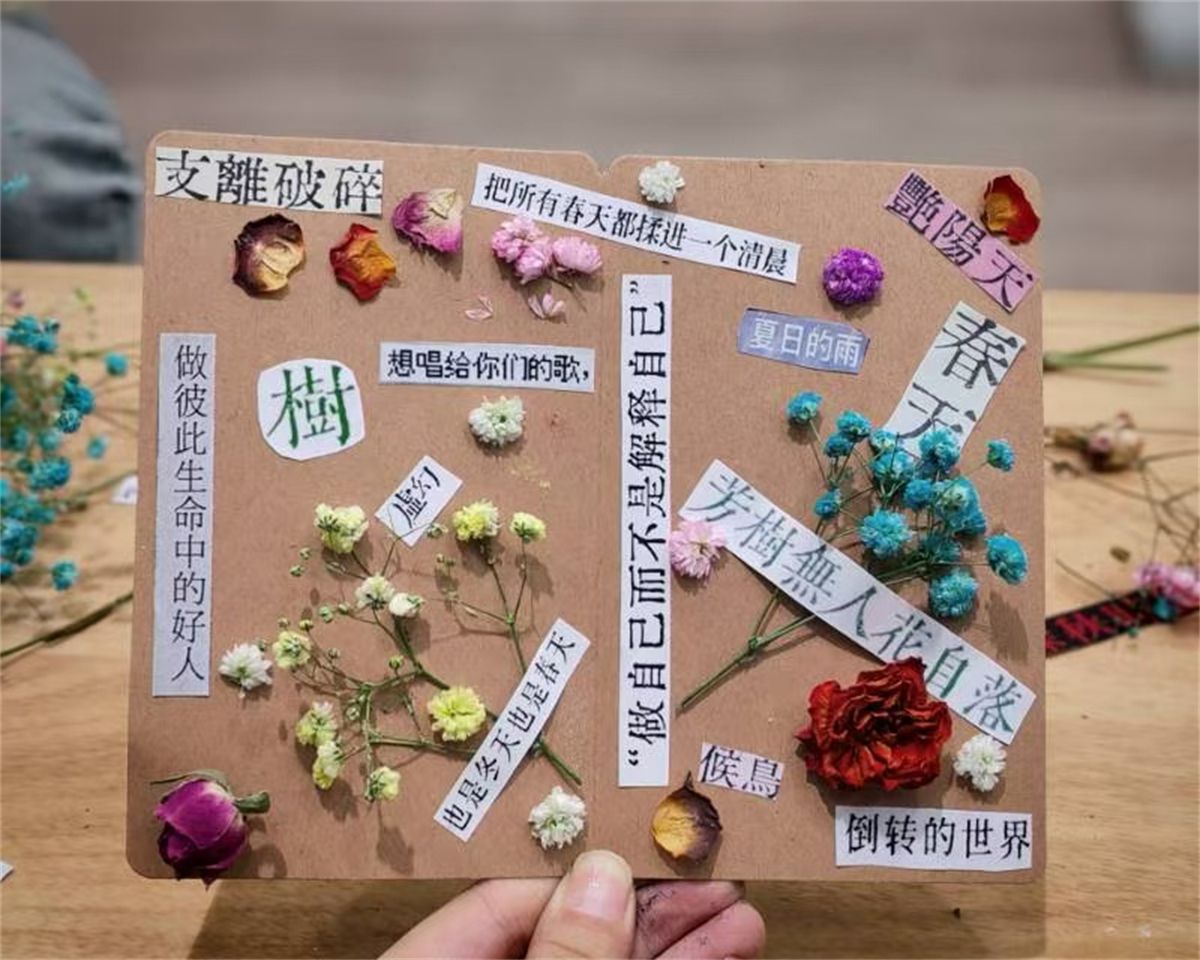 有人捧着素材细细翻阅,逐字斟酌字句搭配;有人围坐一圈交流灵感,思维碰撞间迸发火花;还有人取来鲜花轻置于作品旁,让芬芳与文字共筑美好。