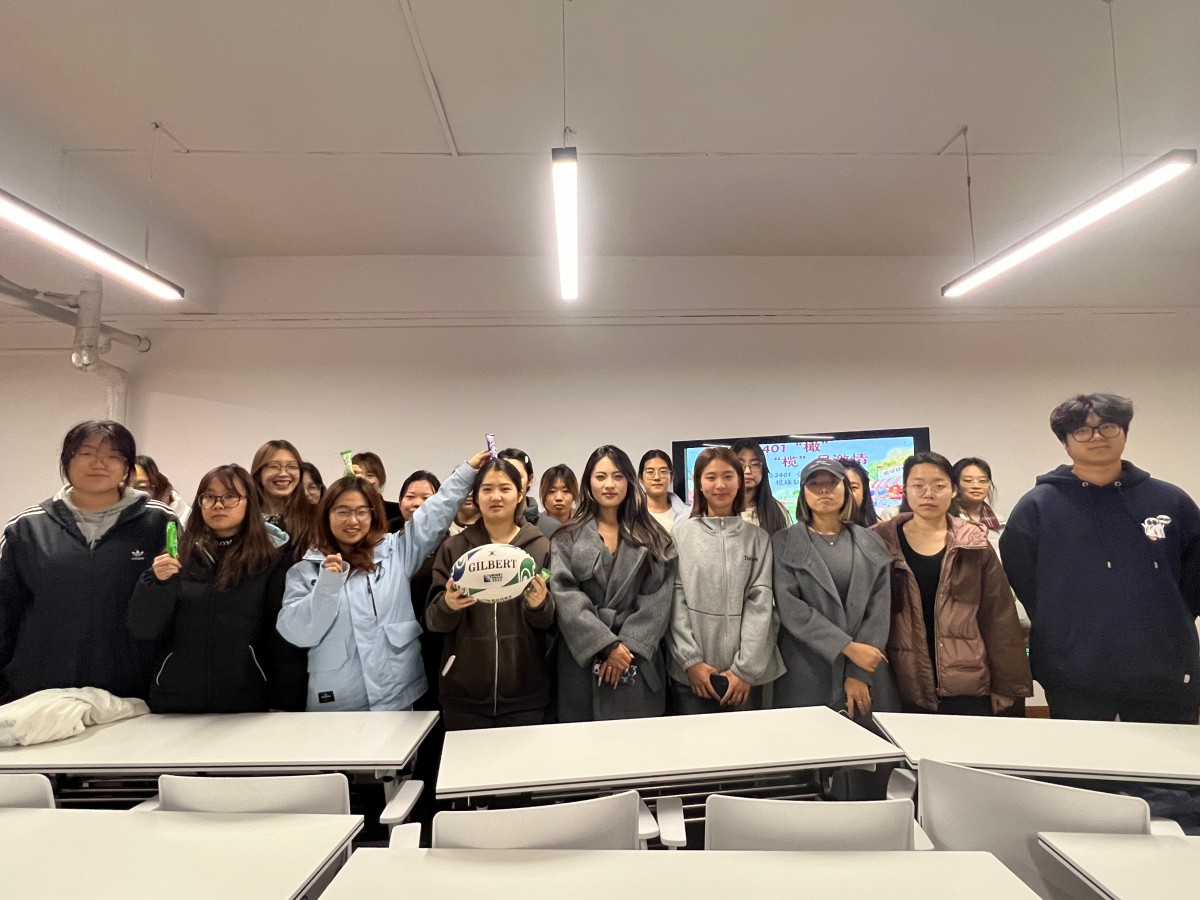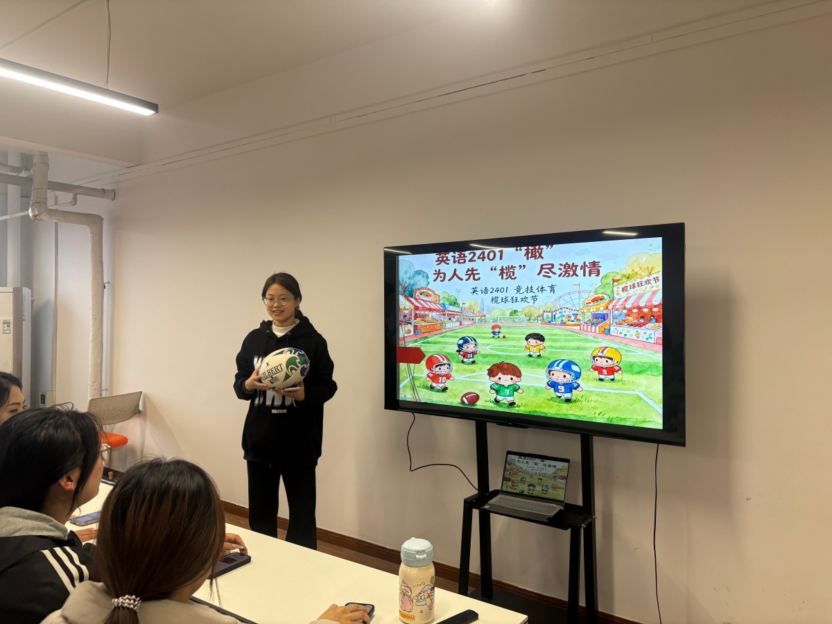 11月12日,英语2401班在无边书院举办“‘橄’为人先,‘榄’尽激情”橄榄球狂欢节活动,以“理论讲解+趣味游戏”的创新形式,深度践行完满教育“体魄与精神共成长”的理念。活动伊始,班委通过课件与视频生动解读橄榄球起源、得分规则及位置分工,为体验环节筑牢基础;“击鼓传球”环节将氛围推向高潮,持球同学答题,答错模仿达阵庆祝动作,答对为小组积分,在欢笑中深化知识记忆;尾声“成长故事会”上,同学们分享从“不敢传球”到主动协作的蜕变,传递活动中的热血与感悟。