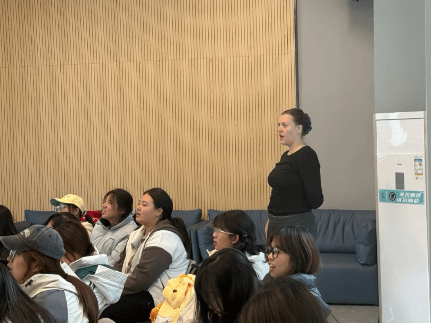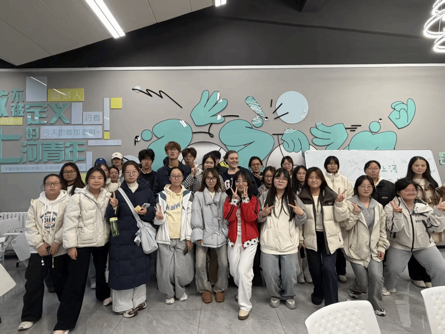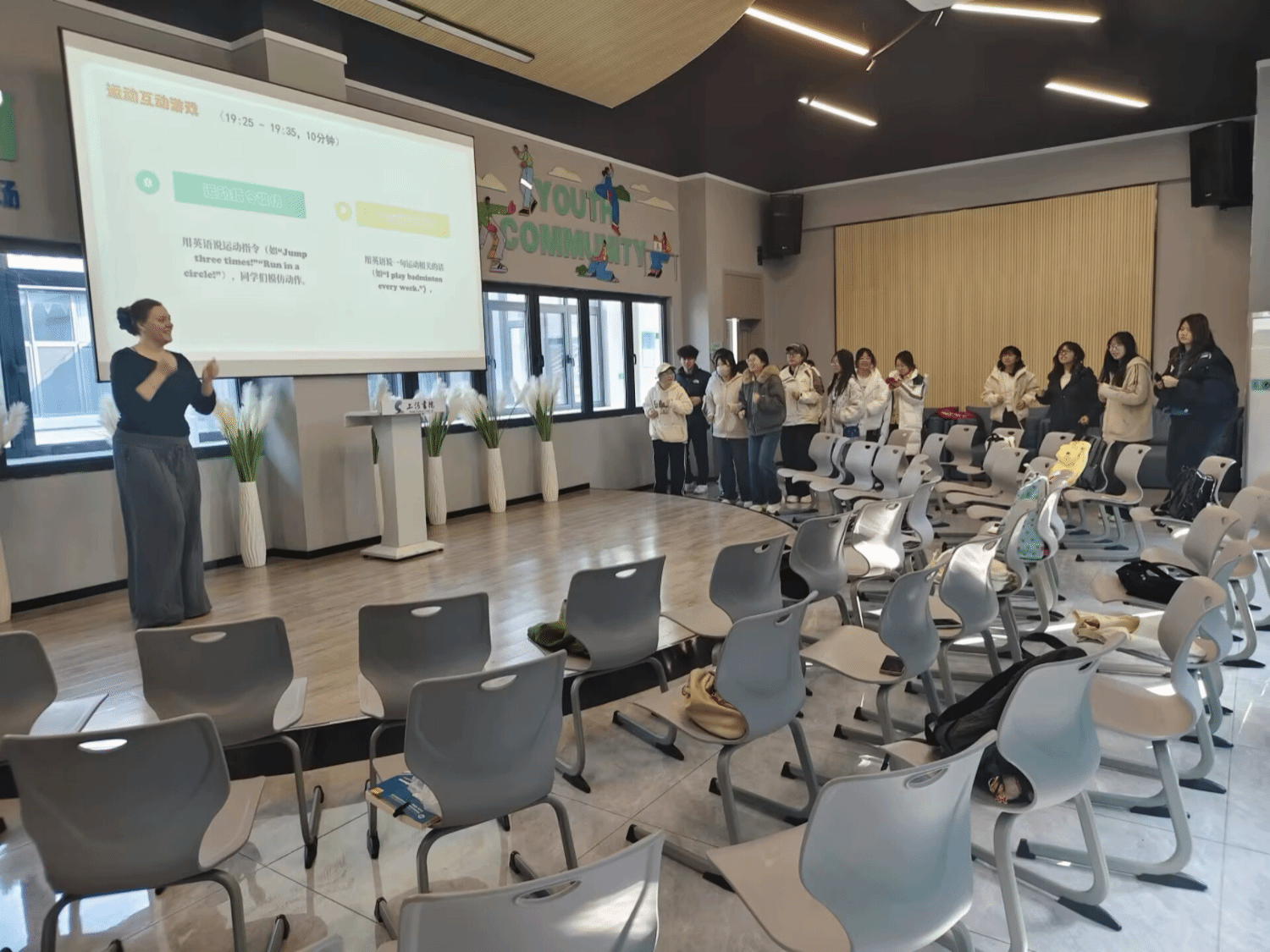 10月30日,英语2501班Unmute Club以“声临其境”为主题,借音乐搭建起跨文化交流的缤纷桥梁。活动以“盲盒话题”破冰,同学们从起初的羞涩拘谨,逐渐蜕变为主动畅言的交流者。随着氛围升温,肢体语言化作“第二母语”,欢声笑语在空间里肆意回荡。最动人的“场外歌唱”环节中,外籍教师Riley与学生携手献唱,旋律成为全场共通的语言。那一刻,教室已不止是教室,更成为一个盛满温情与活力的多元文化空间。