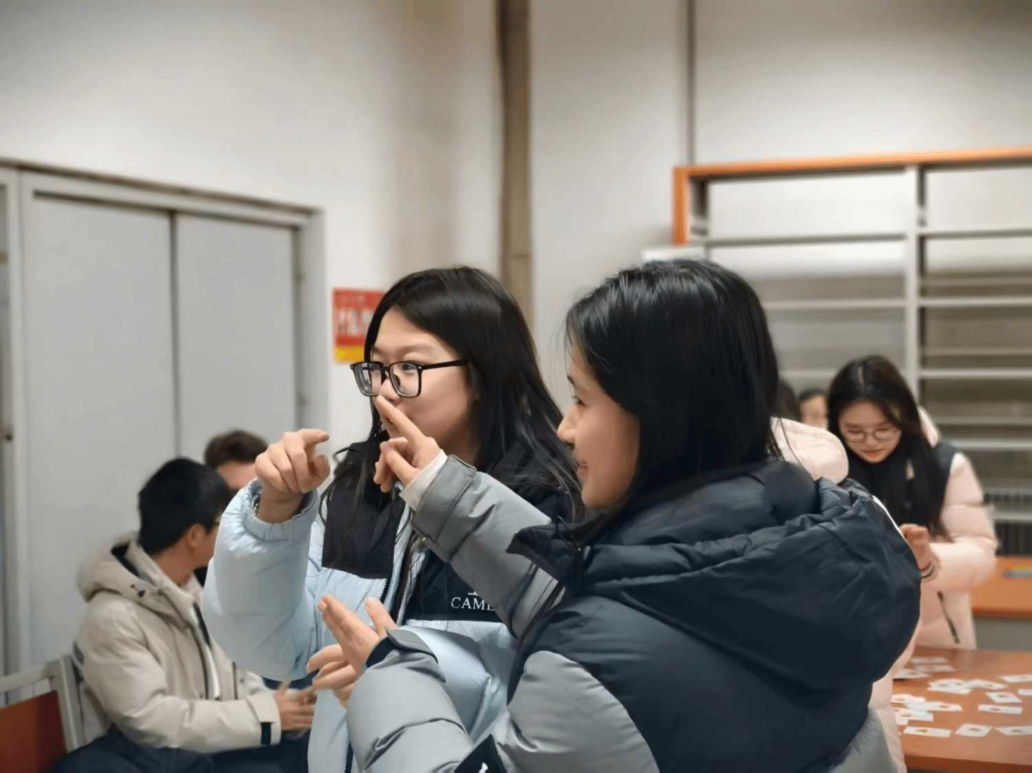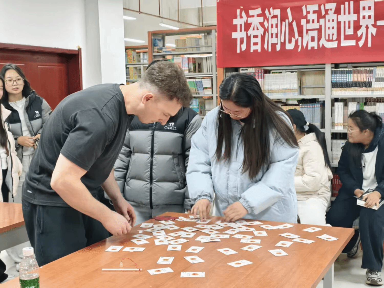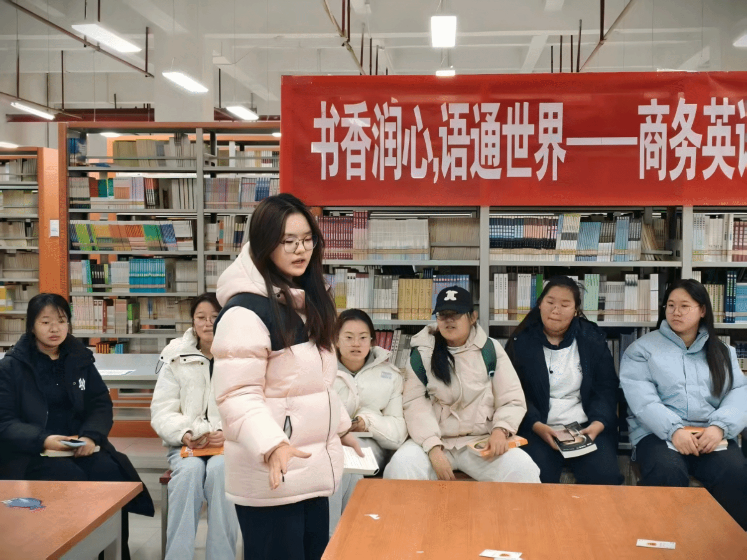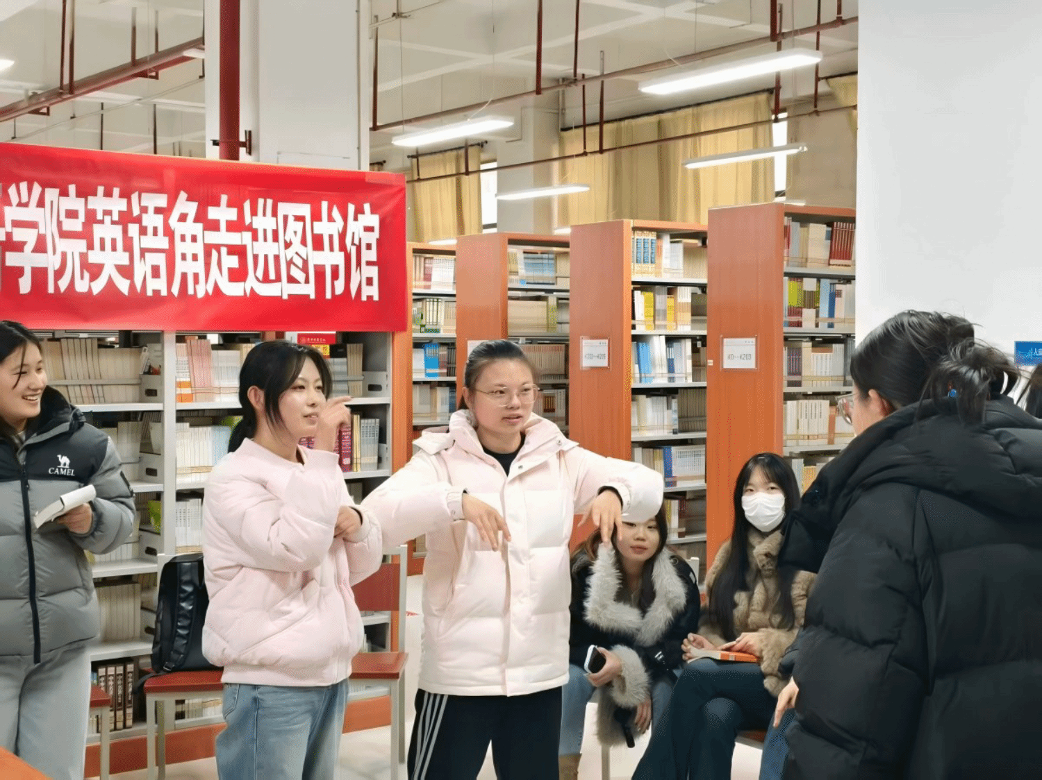 11月19日,英语2503班Unmute Club在图书馆打造了一场“词海寻踪”协作研学盛宴。同学们自制“单词鱼池”“字母扑克”等创意道具,通过“钓词夺宝”“极速拼词”等趣味竞赛,让词汇记忆充满挑战与乐趣。大家用夸张的肢体语言演绎单词,现场秒变即兴小剧场。一场校园经典阅读活动,更让独立思考汇聚成共同成长的养分。
