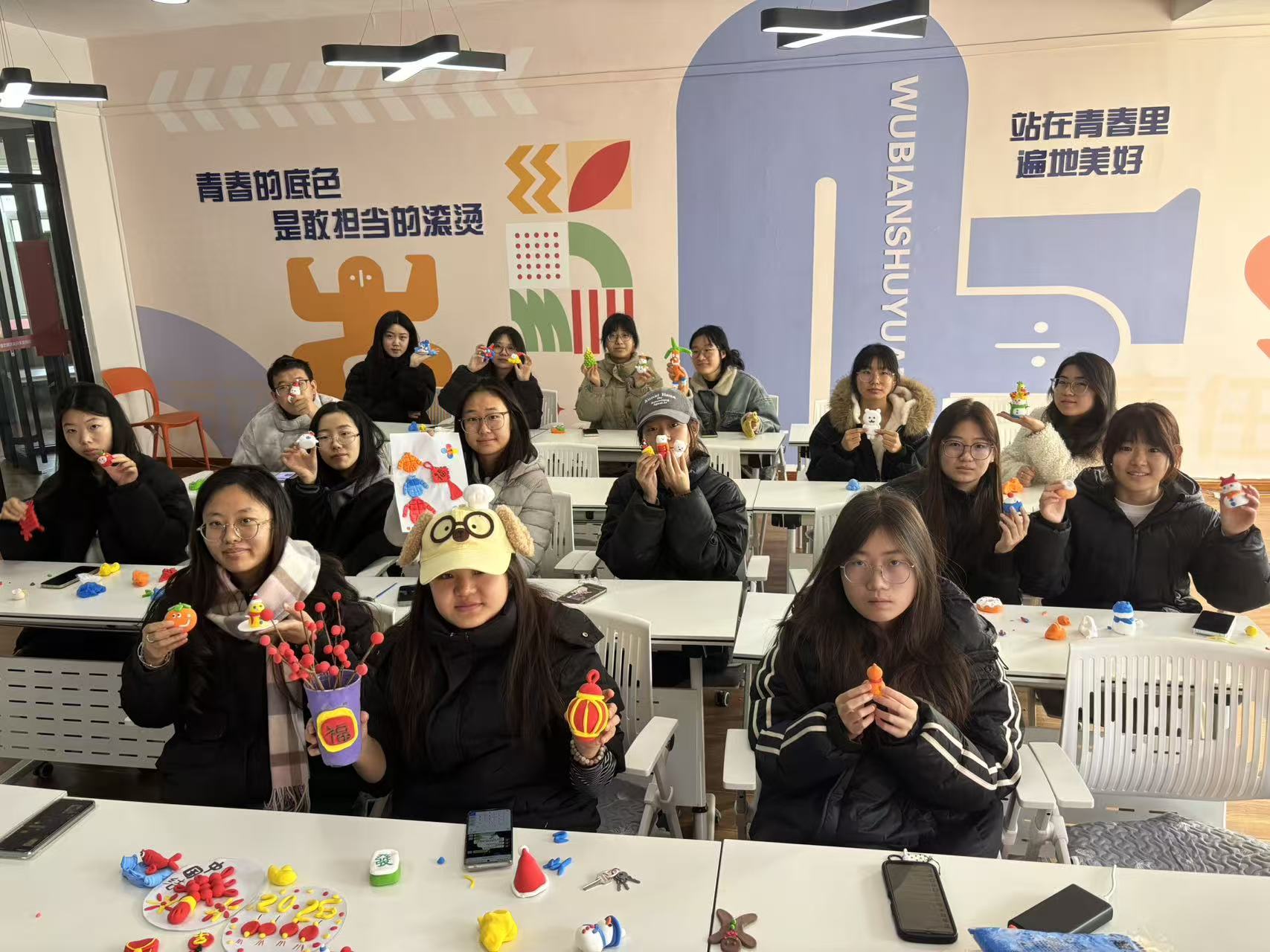 12月8日,商务英语2402班在无边书院301蒲公英·会议室,开展“黏土且生趣,巧手贺新年”活动,践行完满教育理念。活动中,组织者讲解黏土材质、工具使用及防干裂技巧,并分发彩色黏土。同学们创作热情高涨,捏出雪人、萌猫、迷你红包、鞭炮等作品,细节满满。现场欢声笑语,大家交流技巧、分享灵感,班委还设“创意展示台”。此次活动既让同学们放松解压,又加深彼此了解,增强班级凝聚力,为岁末添温暖。
