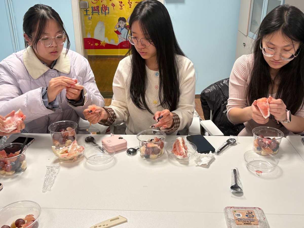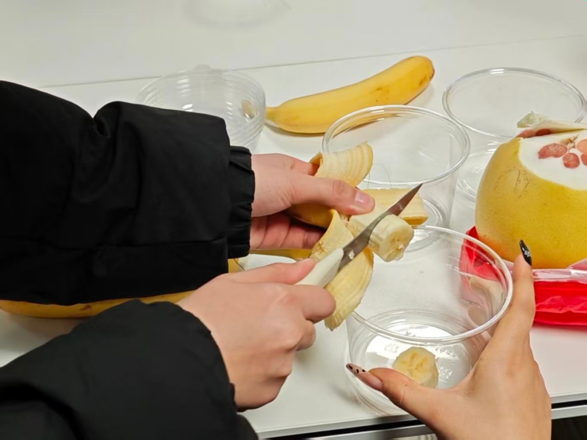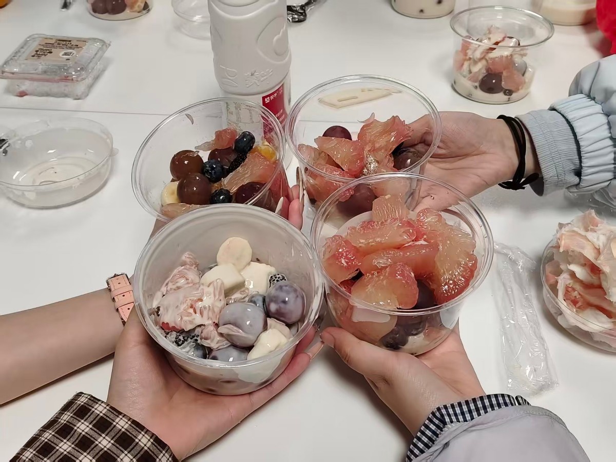 12月10日,太行书院114向山·太行会议室内暖意驱散冬寒,英语2403班“膳香暖情,师生共融”水果宴DIY活动温情启幕。主持人以“青春相遇、以膳融情”为引,点明“共融”核心,瞬间点燃氛围;师生分组协作时,老师俯身与同学探讨水果造型创意,手把手指导搭配技巧,陌生感在笑语中消散;共享环节里,大家围坐品尝成果,有同学借“拼盘喻团结”,老师也分享校园趣事,情谊在美食与交流中升温。活动打破师生、同学间的交流壁垒,为完满班级文化注入活力。