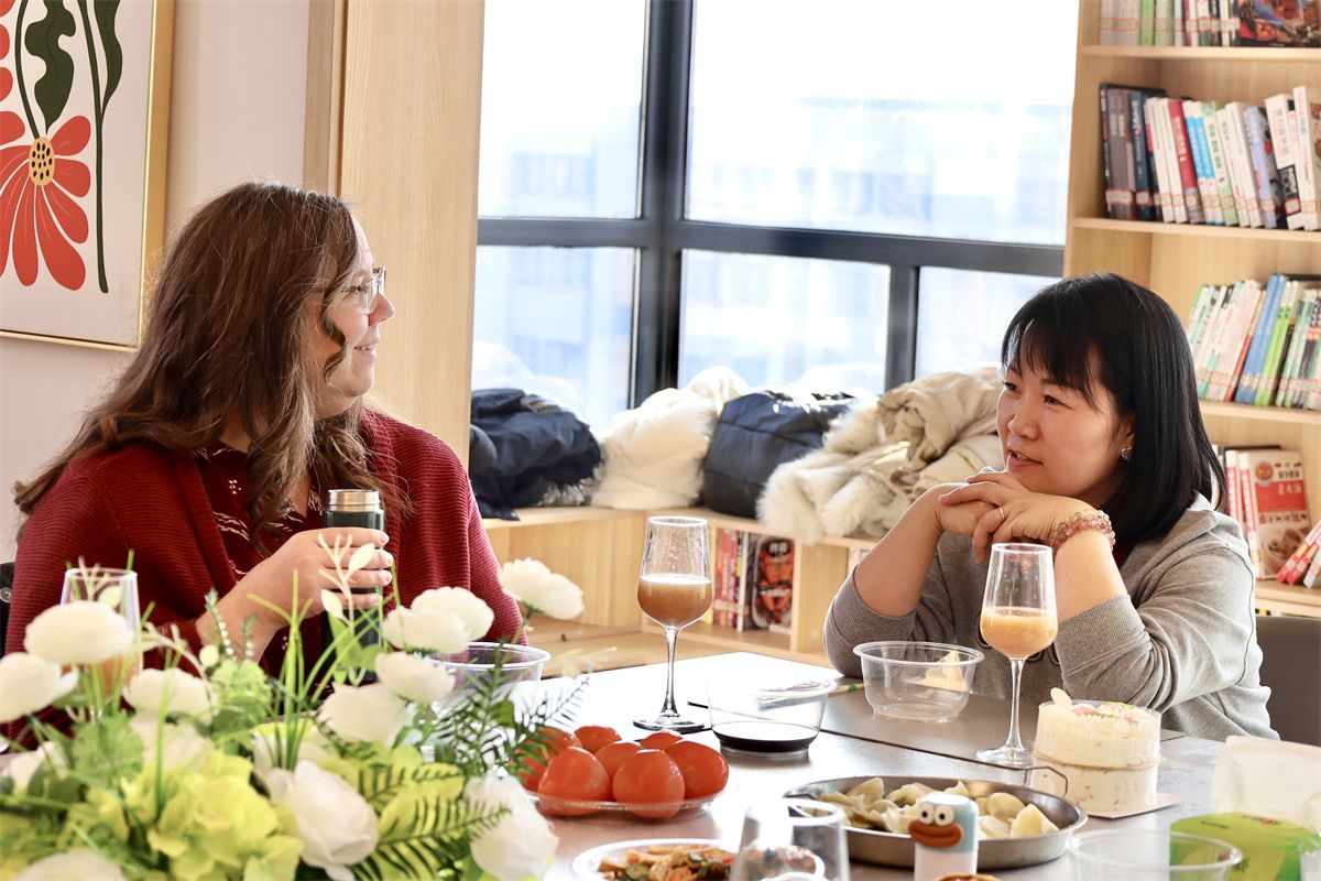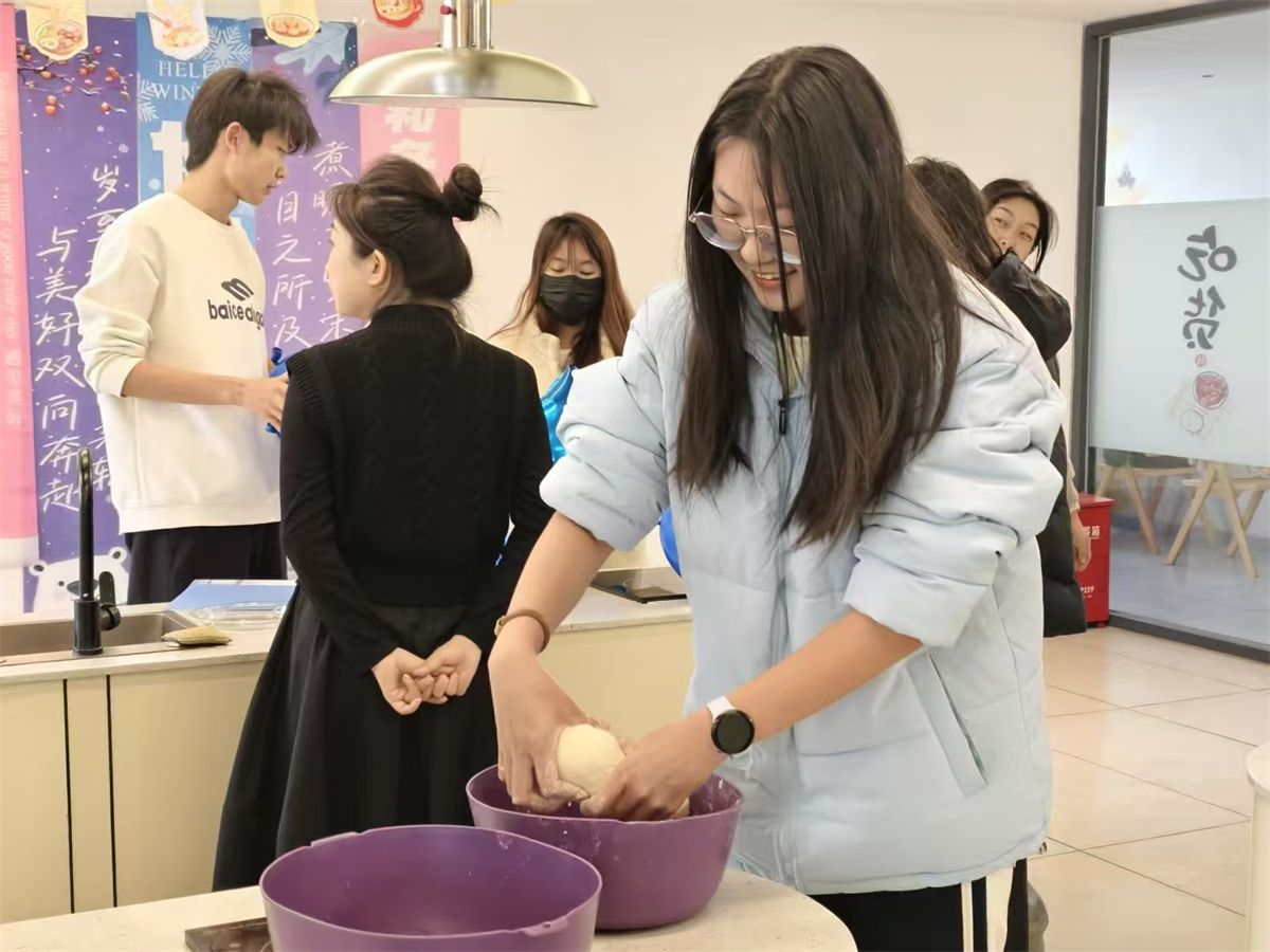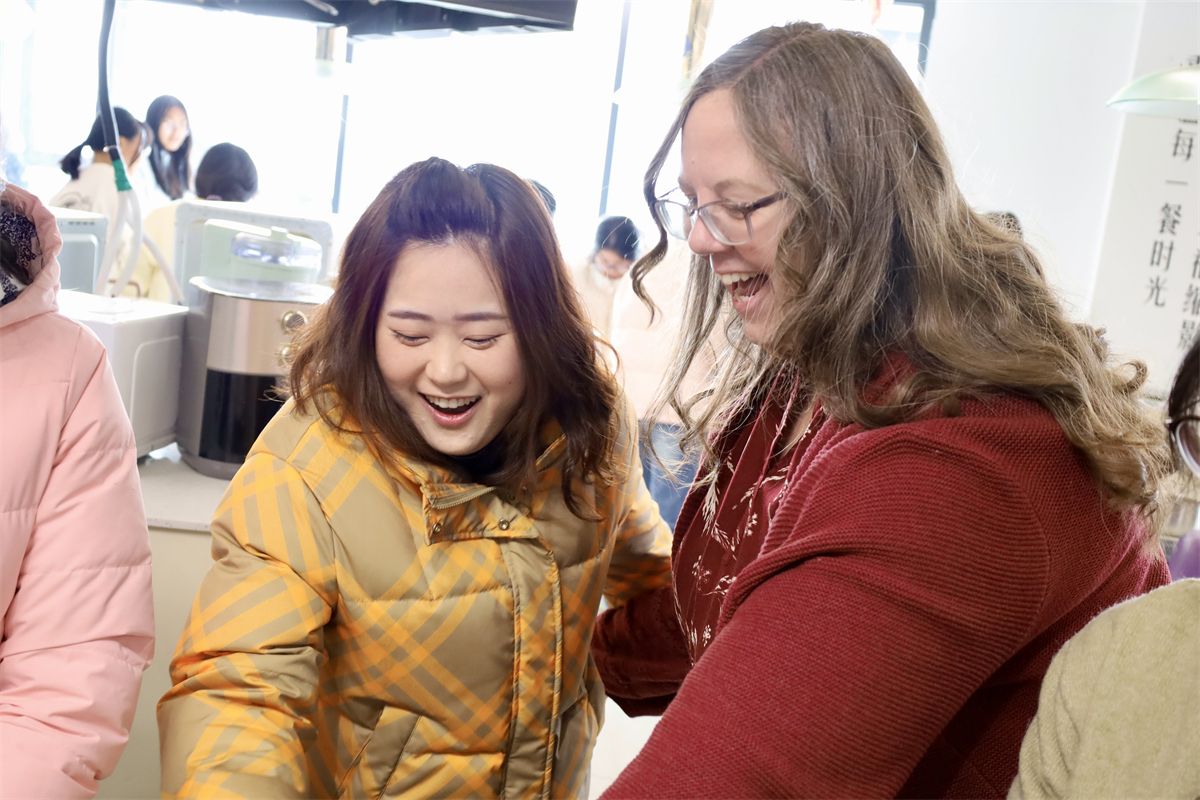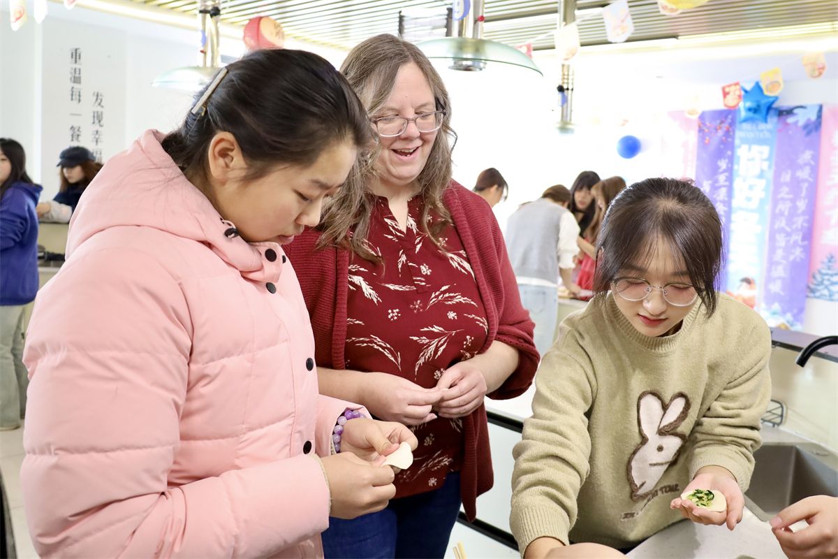同学们还借着包饺子的契机,向外教们讲述藏在饺子里的文化密码:“这种带褶的月牙饺,象征日子过得有滋有味;包成元宝形状,就寓意着招财进宝。冬至吃饺子还有‘不冻耳朵’的说法,这是中国人对生活最浪漫的期许。”Kristin听得入迷,每学会一个步骤,都会好奇地追问背后的民俗故事。
