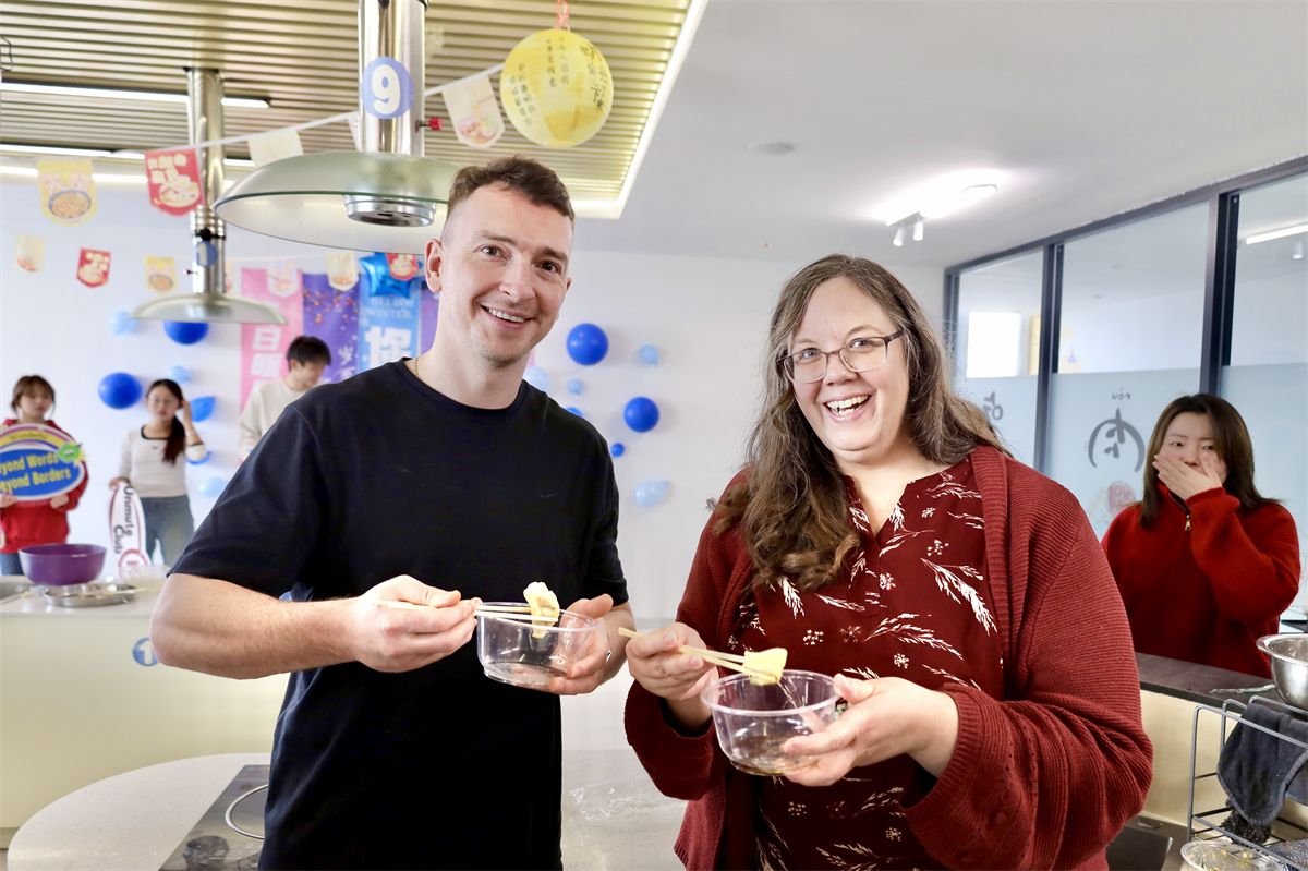 文化交流从不是单向的输出,而是像今天这样,你教我包饺子,我跟你聊家乡菜,以小小的饺子为纽带,让国际友人对中华文化的认知从“听说”变成“亲历”,也让同学们在双语交流中提升了跨文化沟通能力,在双向的分享里,让理解变得更具体、更温暖。
