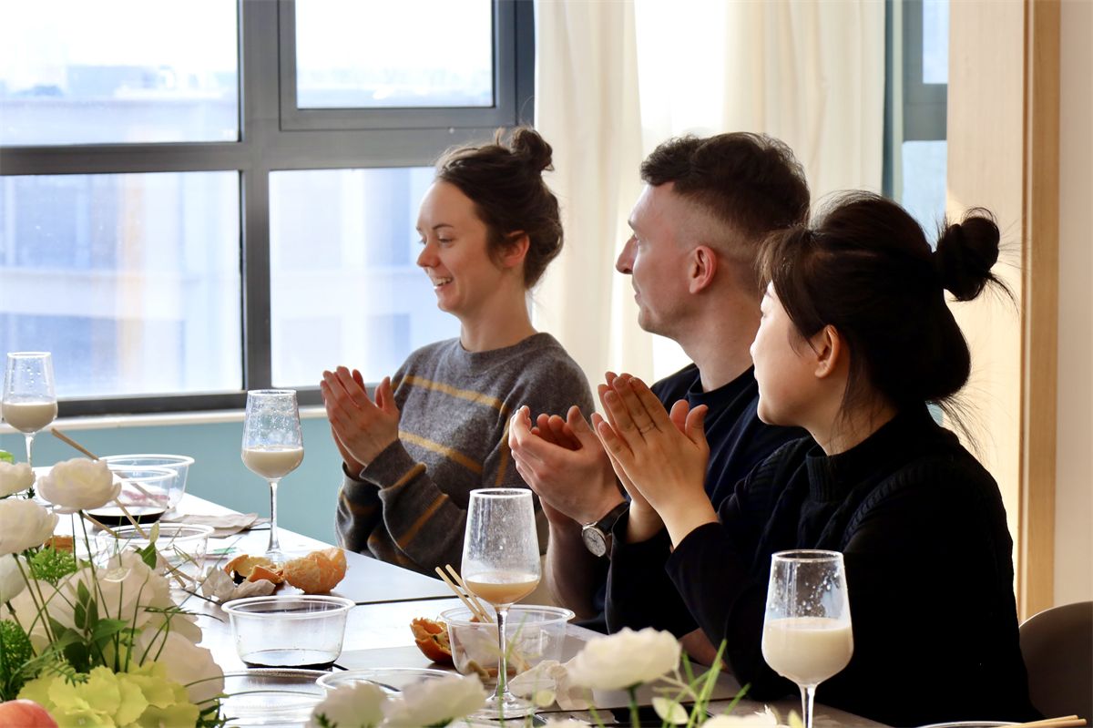 交流的氛围在欢声笑语中愈发浓厚。司乐妮同学说起奶奶的教诲:“奶奶总说,饺子褶捏得密,来年的日子就顺。”Sean听后动情地回应:“这让我想起我的祖母,她烤苹果派时,也会在面皮上划出特定的花纹,说那是‘家的记号’。” 那一刻,语言的隔阂在一来一往的分享中悄然消弭,情谊在面团与馅料的交融中慢慢升温。