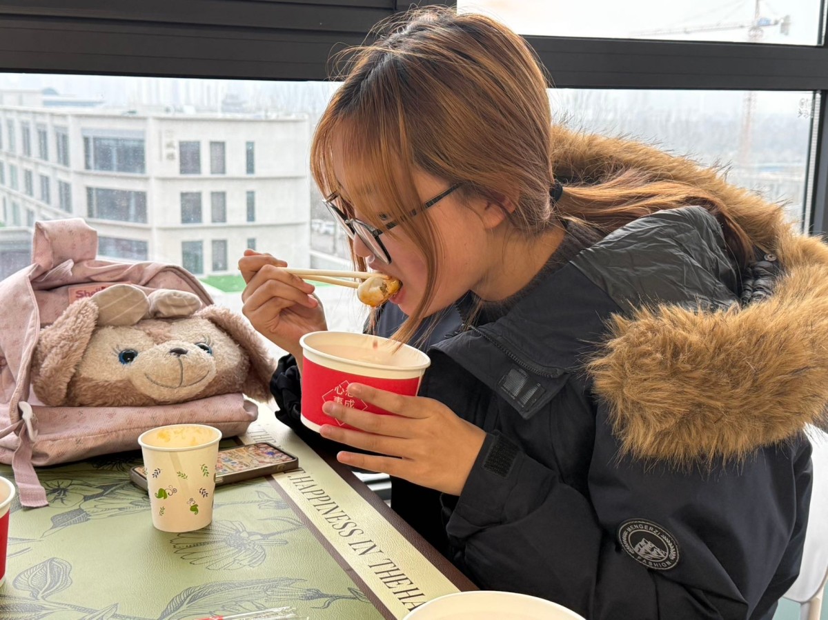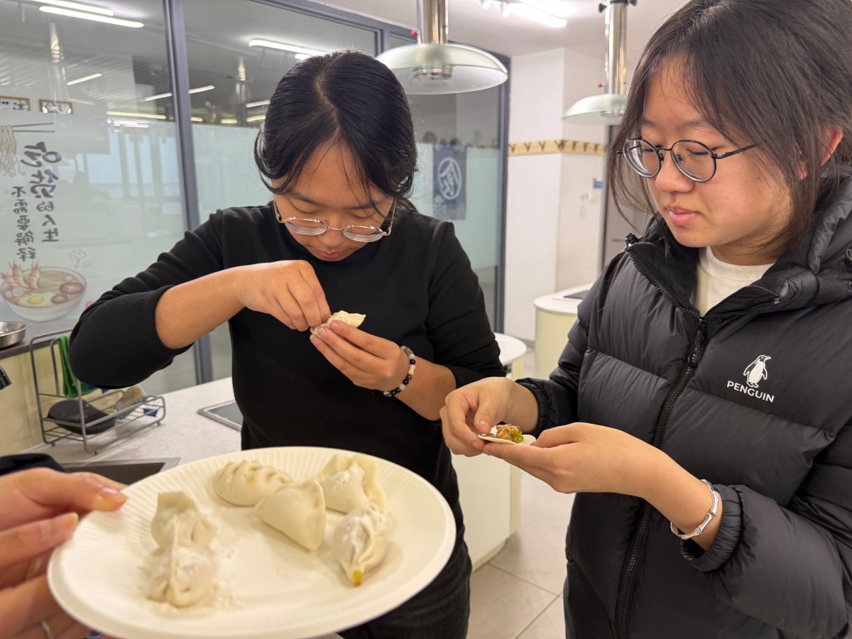 12月11日,英语2502班于毣谷书院共享厨房,开展“围炉包饺,共话情长”冬至主题活动,将节气文化、劳动实践与班级温情深度融合。活动现场,同学们分组协作、各展所长:和面擀皮有条不紊,调馅包饺默契十足。厨艺“新手”在“熟手”指导下,从捏出歪扭饺子到渐握技巧;擅长烹饪的同学则创意包出“元宝饺”“月牙饺”,满室欢声笑语,尽显大家庭暖意。分享环节,外省李同学感慨“包的是团圆,不再想家”。此次活动既让传统文化“活”起来,更凝聚班级情感,为寒冬注入满满正能量。