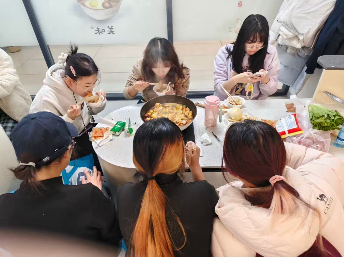 2025年12月12日,英语2504班于毣谷书院6F望野·共享厨房开展“热辣集结号,涮出烟火气”火锅派对,34名同学全员参与。活动伊始,班委以PPT科普火锅文化与食材搭配技巧,实操环节里,同学们分工协作打造麻辣、菌汤等经典锅底,还创意搭配出芝士年糕肥牛卷等特色组合。开涮时大家围坐畅谈校园生活,创意蘸料评选环节更添趣味。此次活动让同学们在烟火气中拉近彼此距离,凝聚了班级情谊。