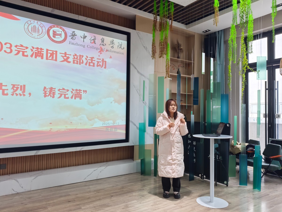 12月11日,英语2503班以“怀先烈,铸完满”为主题,开展红色主题活动,厚植爱国情怀,锤炼完满品格。活动中,主持人借史料片段、先烈事迹,引导学生铭记民族苦难、感悟和平可贵;通过分享李大钊等革命先辈故事,回顾峥嵘革命岁月,让学子汲取红色力量、坚定理想信念;结合改革成就探讨使命,明晰青年担当。红色知识问答环节互动热烈,进一步深化学习成效。此次活动以缅怀启初心,以传承聚力量,引导学子以奋斗书写完满青春答卷。