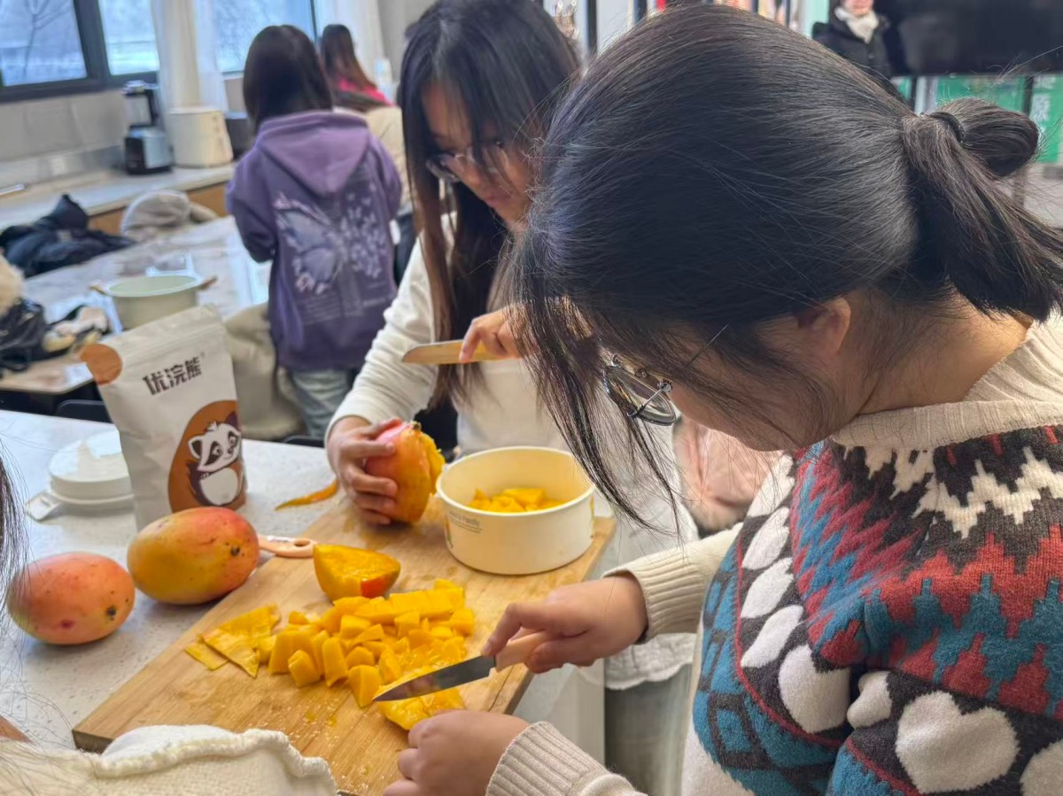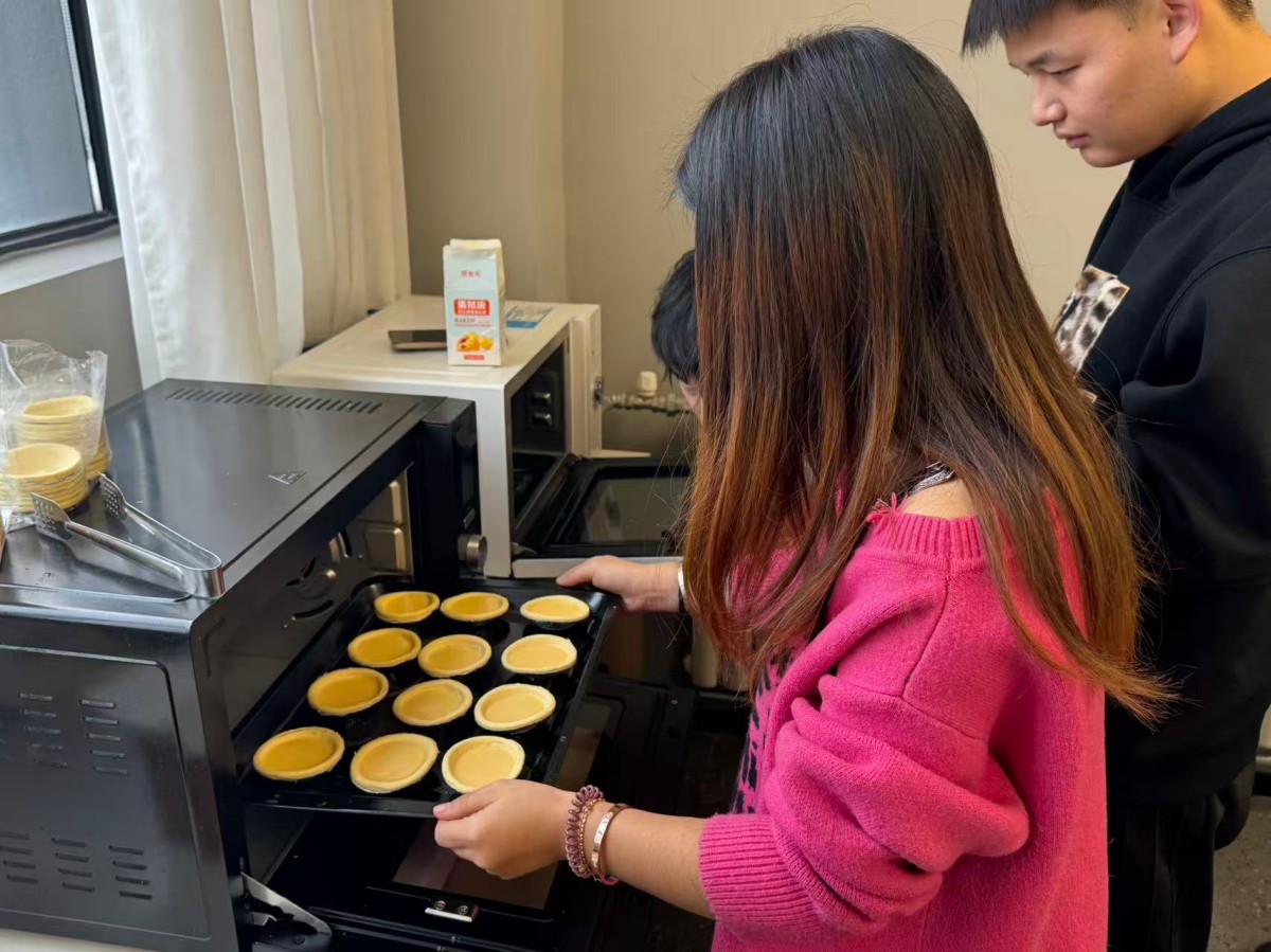 12月12日,商务英语2401班在毣谷书院6F望野·共享厨房开展“甜蜜工坊”活动,同学们分四组比拼糖水与蛋挞制作。各组分工协作,精心煮制芒果西米露、牛奶燕麦粥、姜汁可乐、小吊梨汤四款暖心糖水,同步调配蛋挞液、烘烤金黄蛋挞,厨房内烟火气与甜香交织。甜品出炉后,大家互相分享,酥脆蛋挞、清甜糖水搭配欢声笑语,既解锁了动手技能,又在协作中拉近情谊,为校园生活留下温暖回忆。