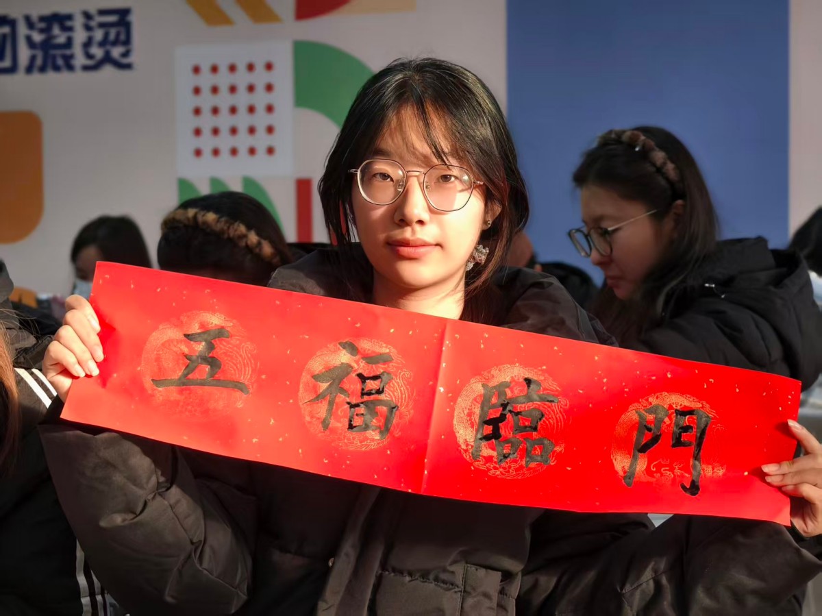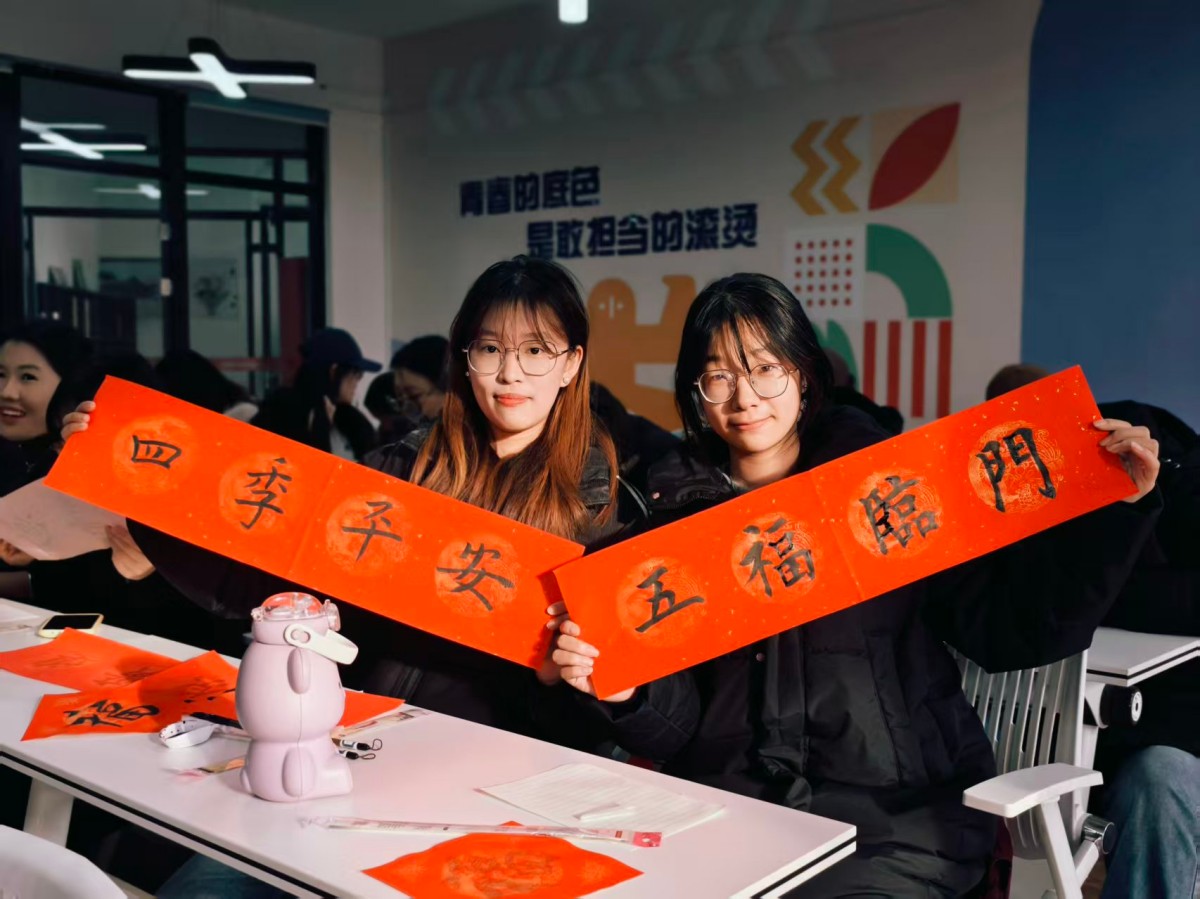 岁末年味渐浓之际,12月11日,英语2404班于无边书院301开展“福韵盈春·以物易新”活动,以传统年俗联结同窗情谊。前期班委细致统筹,完成场地规划、物料采购与分工;活动当日,新春音乐流淌间,书法工具整齐摆放,氛围温馨有序。核心环节里,同学们挥毫蘸墨,在红纸上书写福字与春联,随后带着原创作品互换挑选,交流书写心得、互道新春祝福,让墨香与暖意交织。