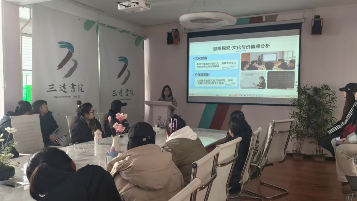 12月16日,英语(专升本)2502班32名同学自发组织在三达书院-行空间《华尔街之狼》英文原版影片赏析活动,提前分工预约教室、搜集金融背景与英文台词资料。观影时,同学们专注记录台词修辞,轻声交流排比句式等表达技巧;影片结束后,大家围绕“语言与职业伦理”深入探讨,有人整理经典台词分享,更有人感悟“研习语言不是为了巧言令色,而是用专业守护职业初心”。活动以光影为媒,既提升专业素养,又明晰职业价值观。
