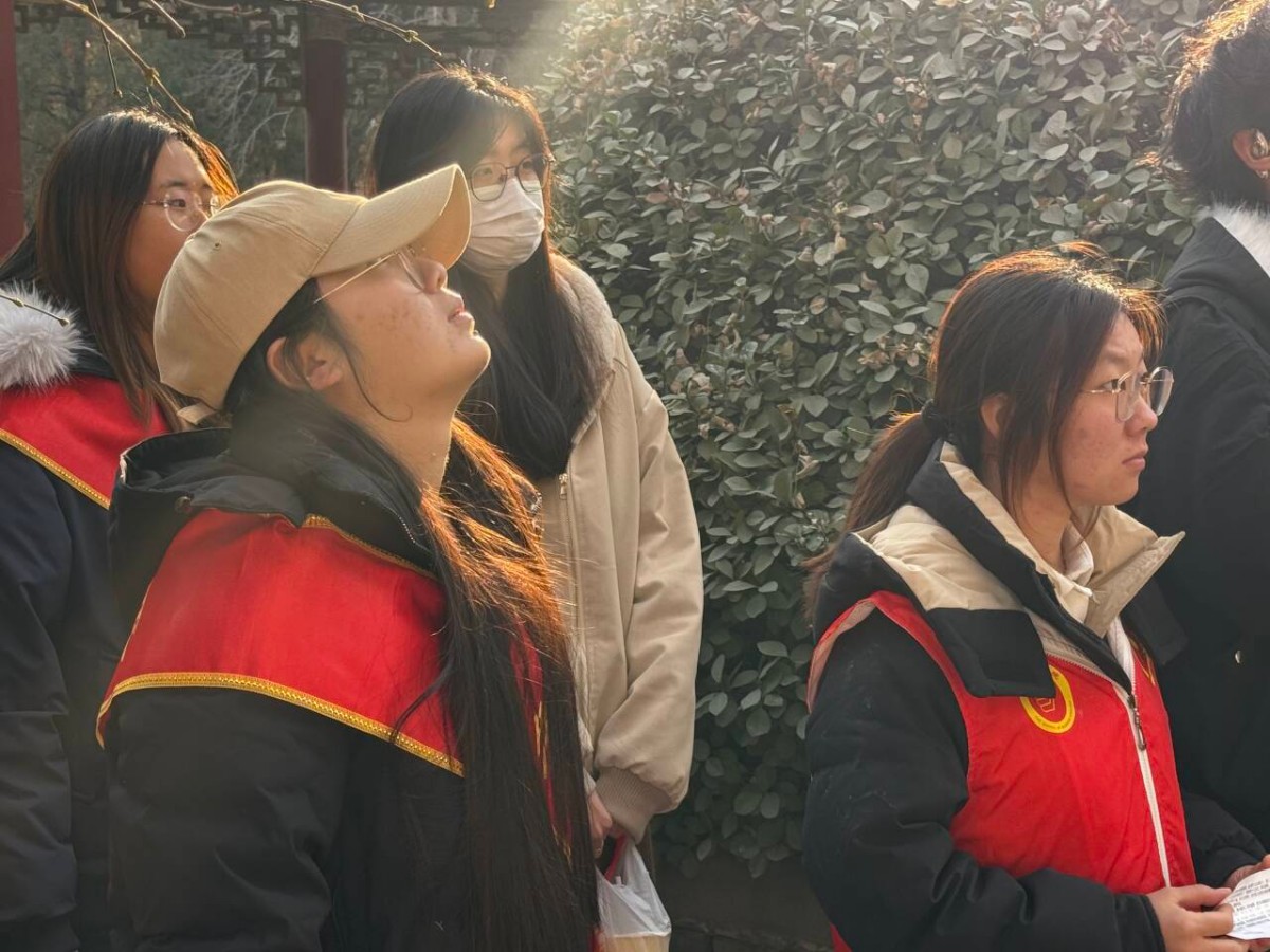 在讲解员引导下,同学们近距离观察白塔的建筑结构与雕刻纹饰,聆听古塔修缮故事,感悟佛教文化在晋中地区的传播脉络,志愿者们坚定了“做传统文化守护者与传播者”的信念,让青年触摸到古迹的历史温度,深化了对中华优秀传统文化的认知,唤醒了文化传承的责任与使命。
