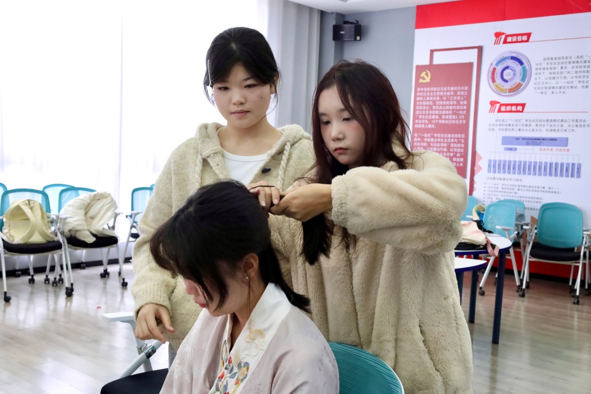随后的摄影环节,将这份古典之美定格为永恒。摄影师细致讲解光影运用与构图技巧,耐心指导同学们捕捉汉服的飘逸灵动、妆容的精致细腻与自身的气韵流转。快门声此起彼伏,镜头下的少女们,既有当代青年的朝气活力,亦有古典美的温婉雅致,成为传统美学最动人的传承者。
