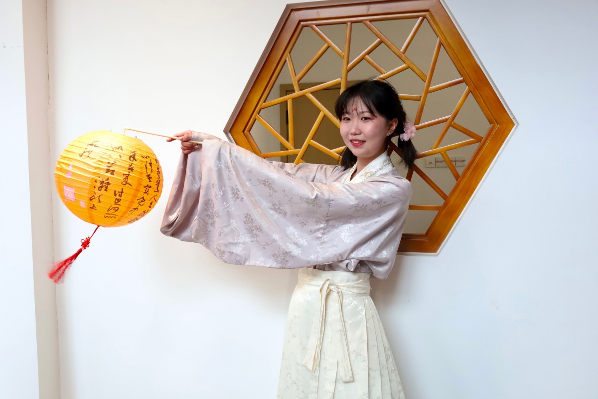 汉服体验环节更是将氛围推向高潮,齐胸襦裙灵动飘逸,大袖衫如云似霞,同学们精心挑选款式、互相整理衣饰,身着华服的瞬间,仿佛穿越千年,重回衣冠上国的盛景,沉浸式体验传统服饰的雅致与韵味。