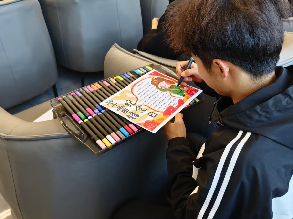3月10日,英语(专升本)2507班在太行112漫趣·拾光轻家宴举办“植绿护绿践初心,雷锋精神伴我行”主题活动。同学们通过创意宣传牌制作、主题宣讲、植树护绿等实践环节,共同栽种“雷锋林”,将志愿精神融入生态守护。活动以劳树德、以行践志,让同学们在劳动中体悟责任,在协作中凝聚力量,真正把雷锋精神落到实处、植于心底,用青春行动为校园添绿、为时代添彩。