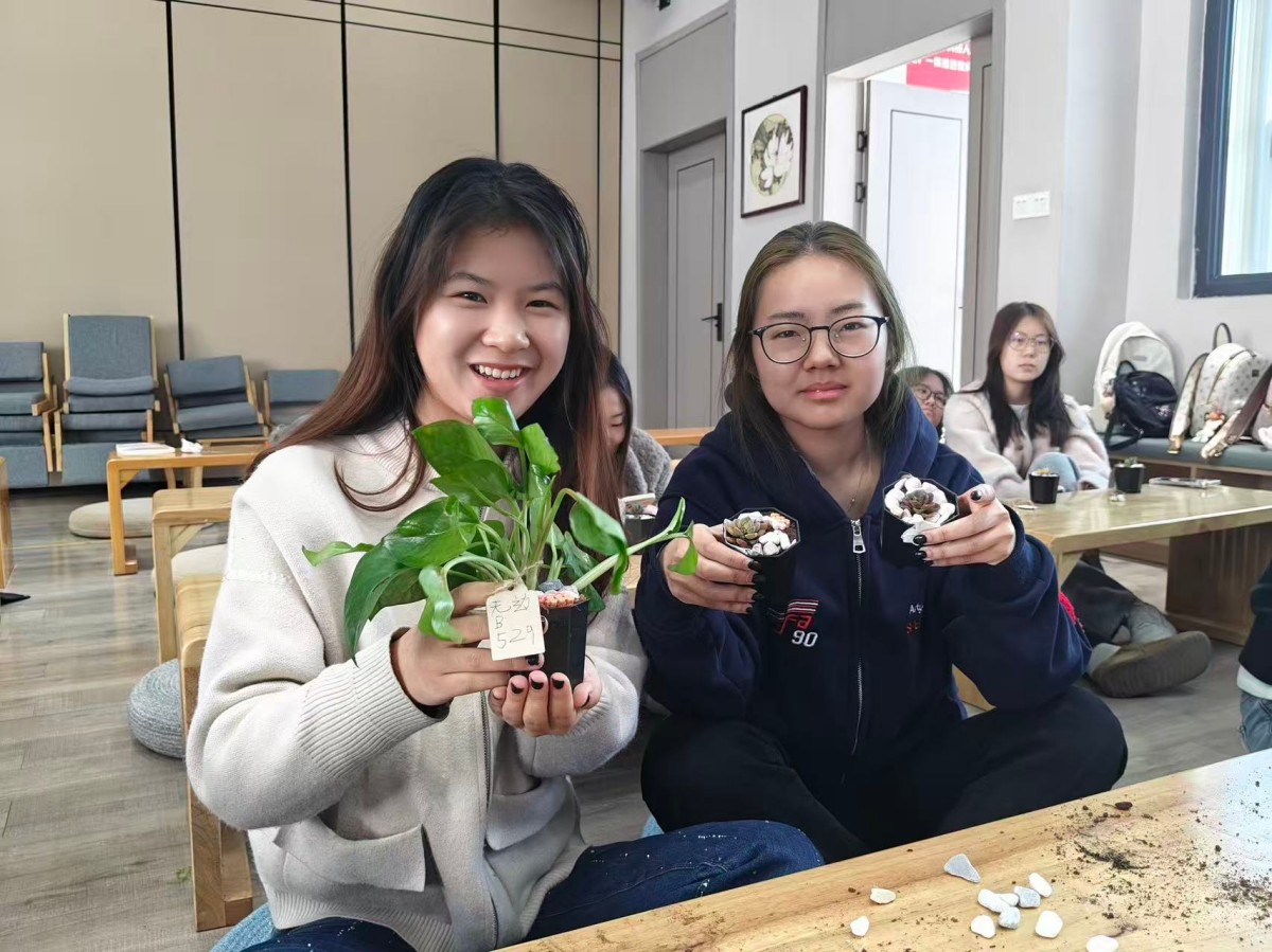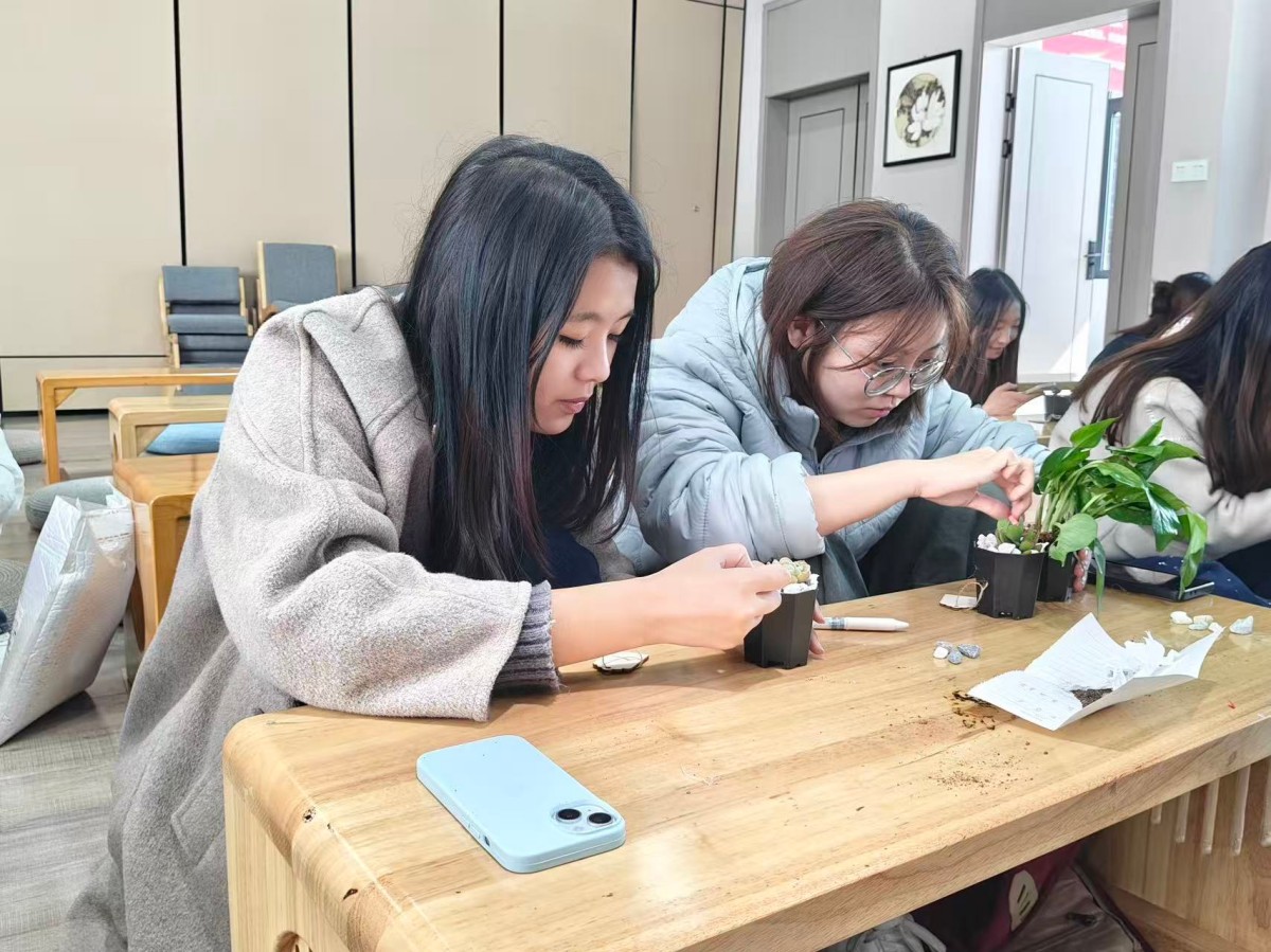3月11日,商务英语2401班于上河书院南庭院开展“植此青绿,绘梦新生”多肉种植主题完满活动。同学们亲手培土、栽种、装饰多肉,并以画笔写生定格美好,在亲近自然的过程中感受生命力量。活动氛围温馨治愈,大家互助协作、其乐融融,既舒缓了身心,也增进了班级情谊。同学们将带着这份生机与希望向阳成长,以蓬勃姿态奔赴更美好的未来。