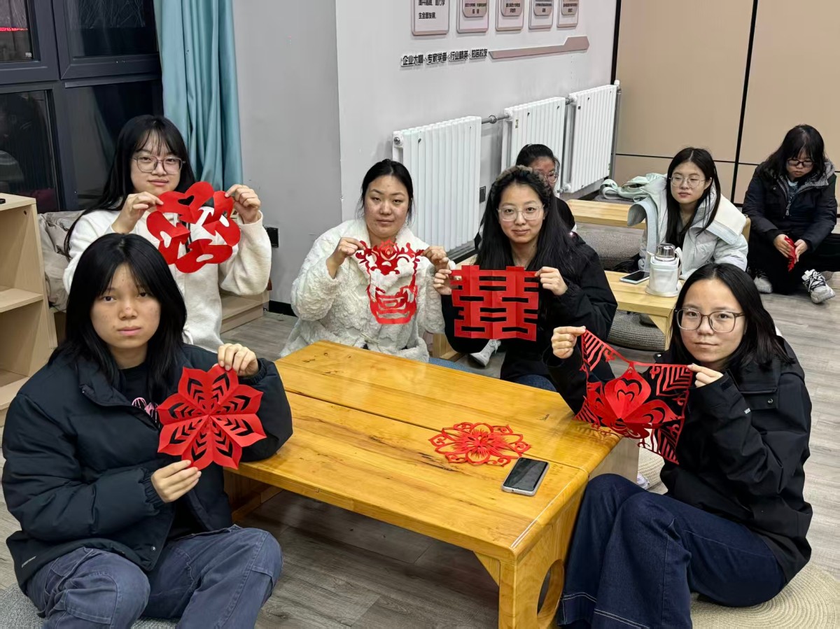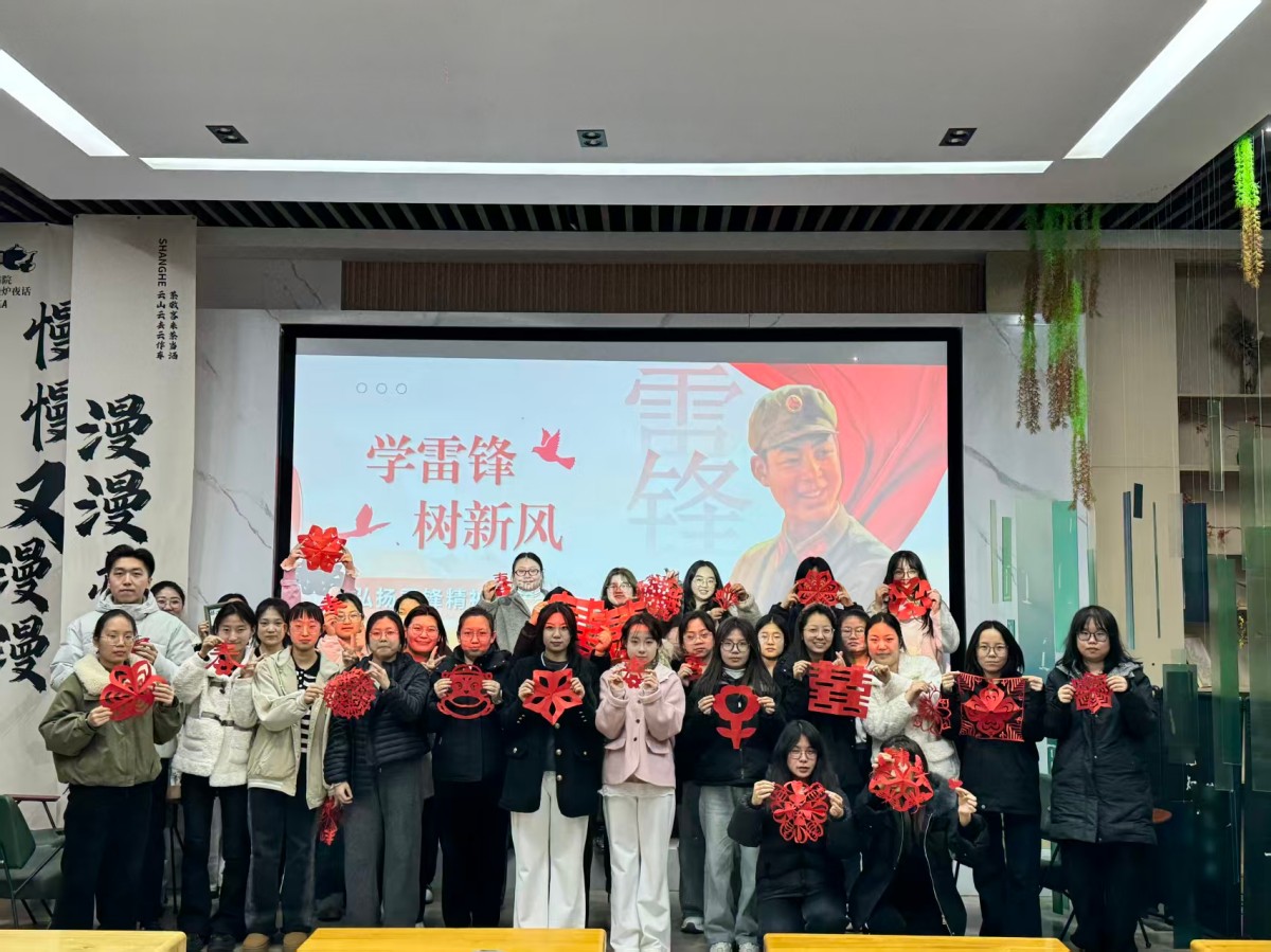 3月10日,英语(专升本)2505班在上河书院207竹林·围炉夜话顺利开展“学雷锋传美德,剪非遗承文脉”主题活动。大家沉浸式体验非遗剪纸技艺,创作福字、窗花等特色作品,让传统文化在指尖焕新,此次活动将志愿服务与非遗传承有机结合,激励青年在奉献中涵养品格,在传承中坚定文化自信,以青春之力守护文脉、传递温暖。